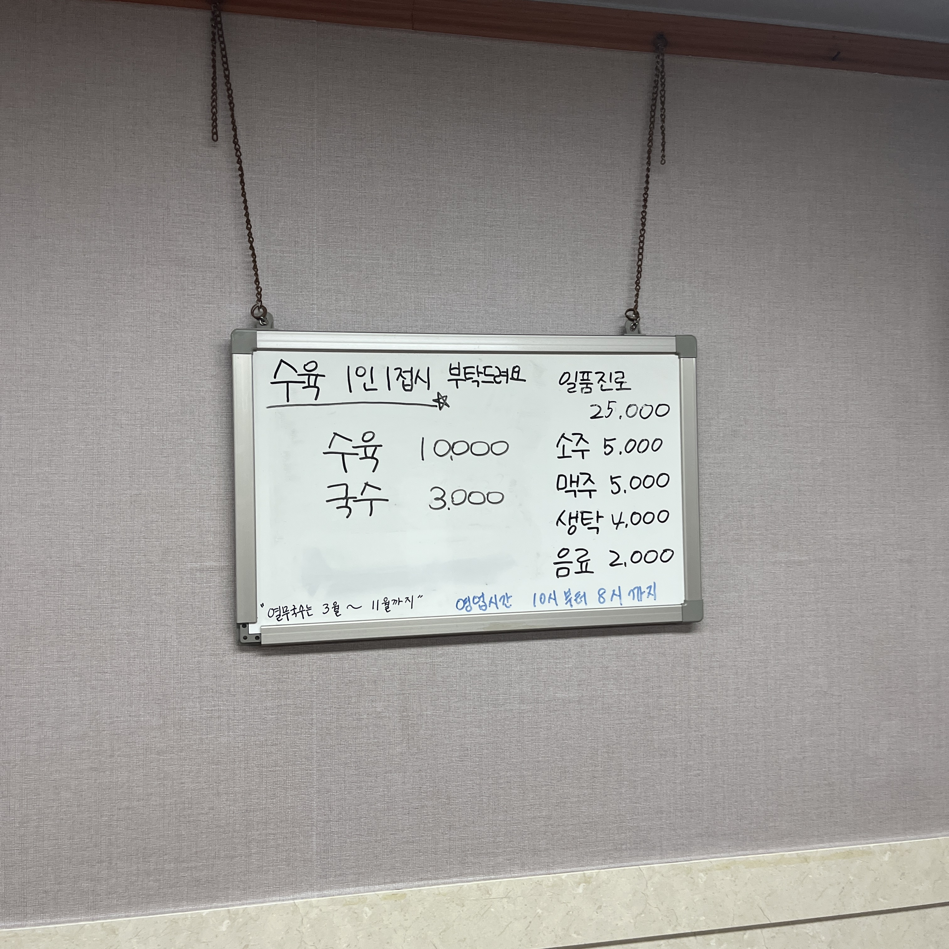 여름에는 열무국수도 있는 것 같은데, 제가 간 겨울엔 수육과 국수로 메뉴가 준비되어 있습니다.