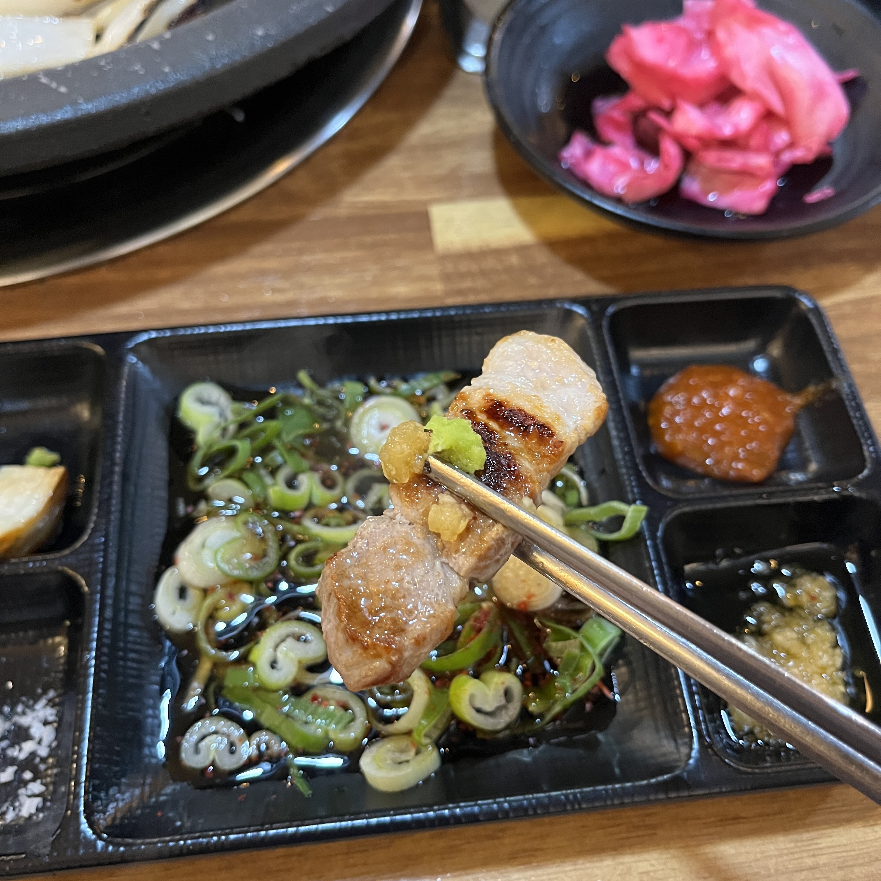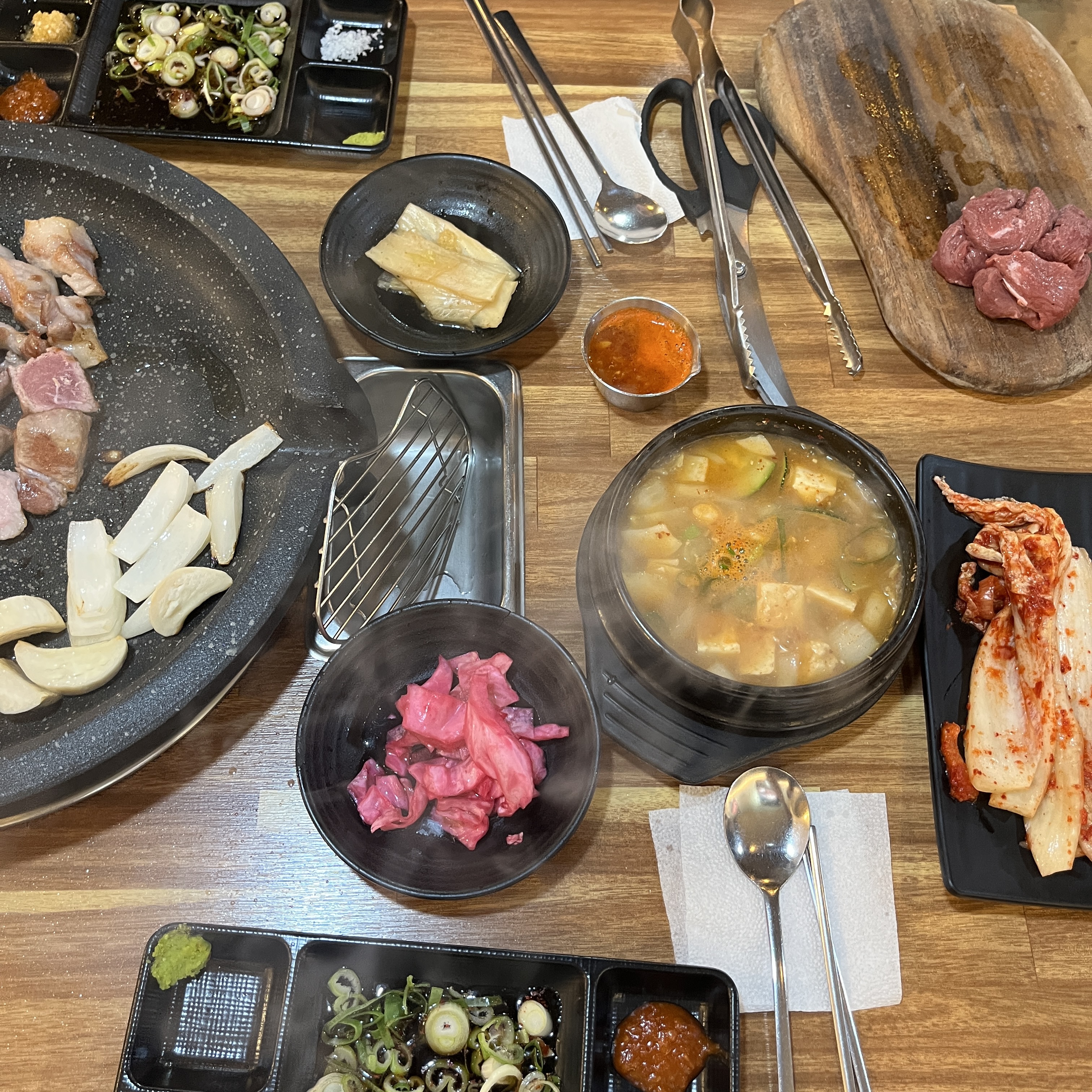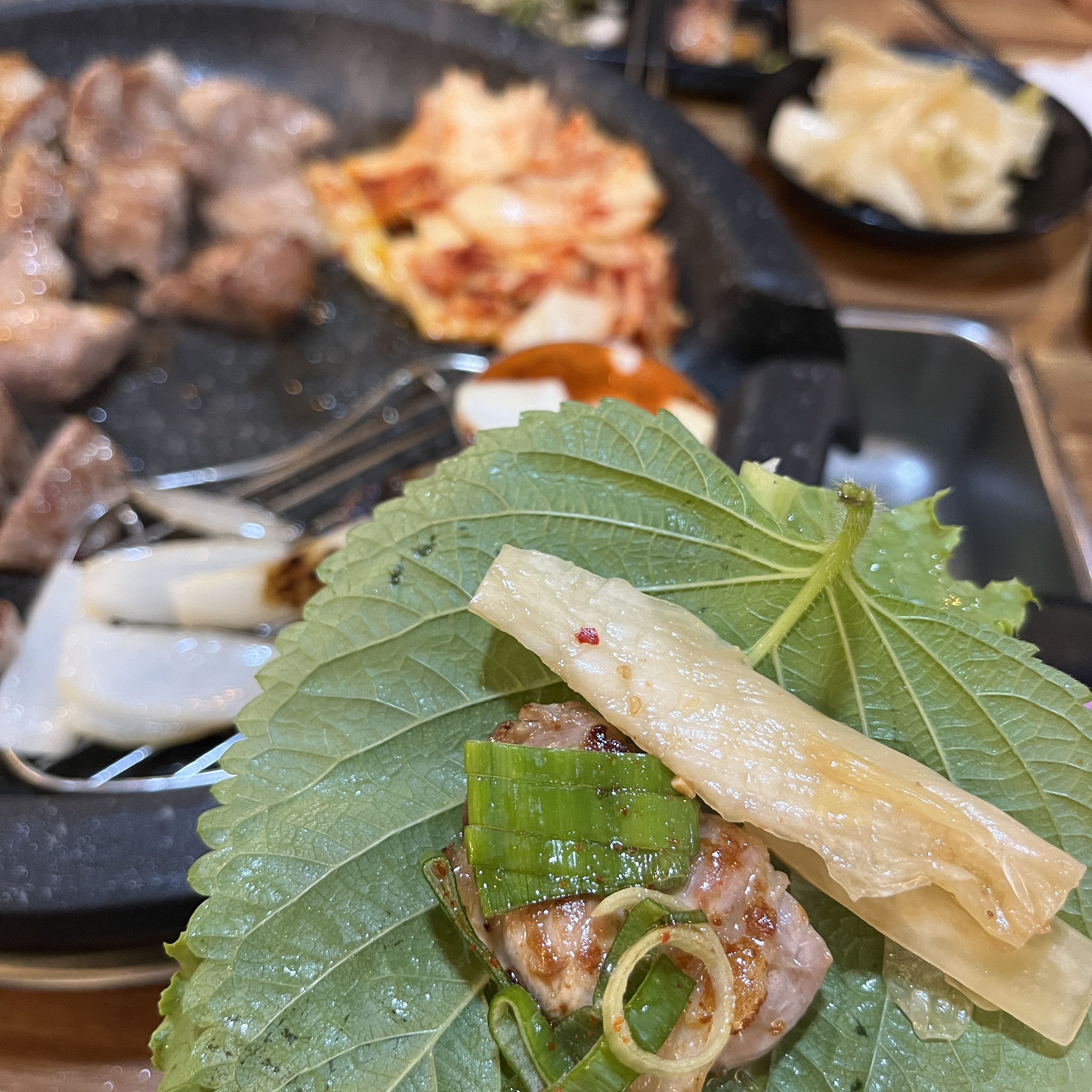 저기 묵은지를 살짝 씻어낸게 있는데 저게 고기랑 곁들여먹으면 그렇게 감칠맛도 올라오는게 좋았습니다.