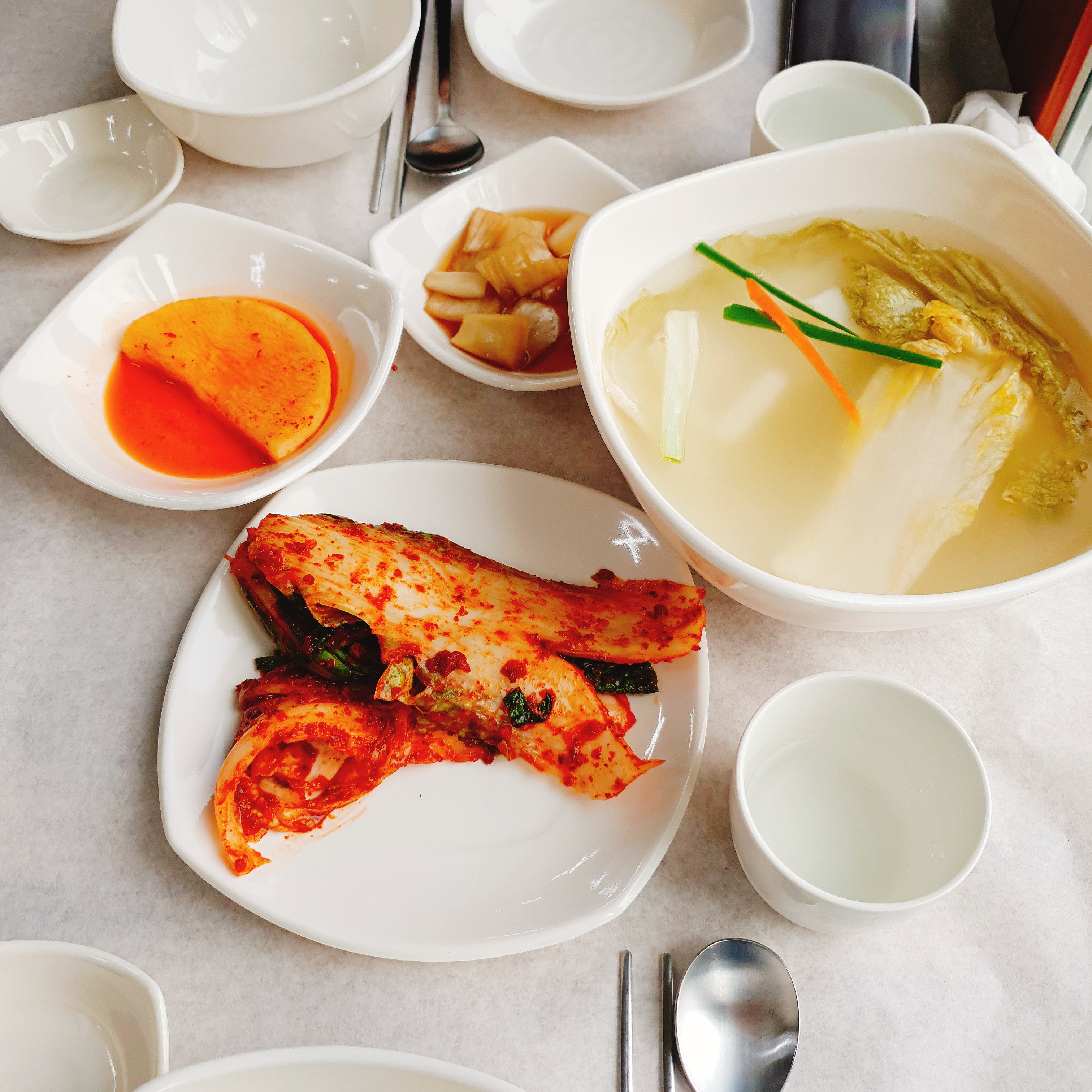 시원하니 맛있었습니다. 백김치도 많이 주셔서 각자 그릇에 덜어먹었는데 개인적으로 백김치를 그렇게 좋아하는건 아니라서 김치와 깍두기를 집중적으로 공략했습니다.