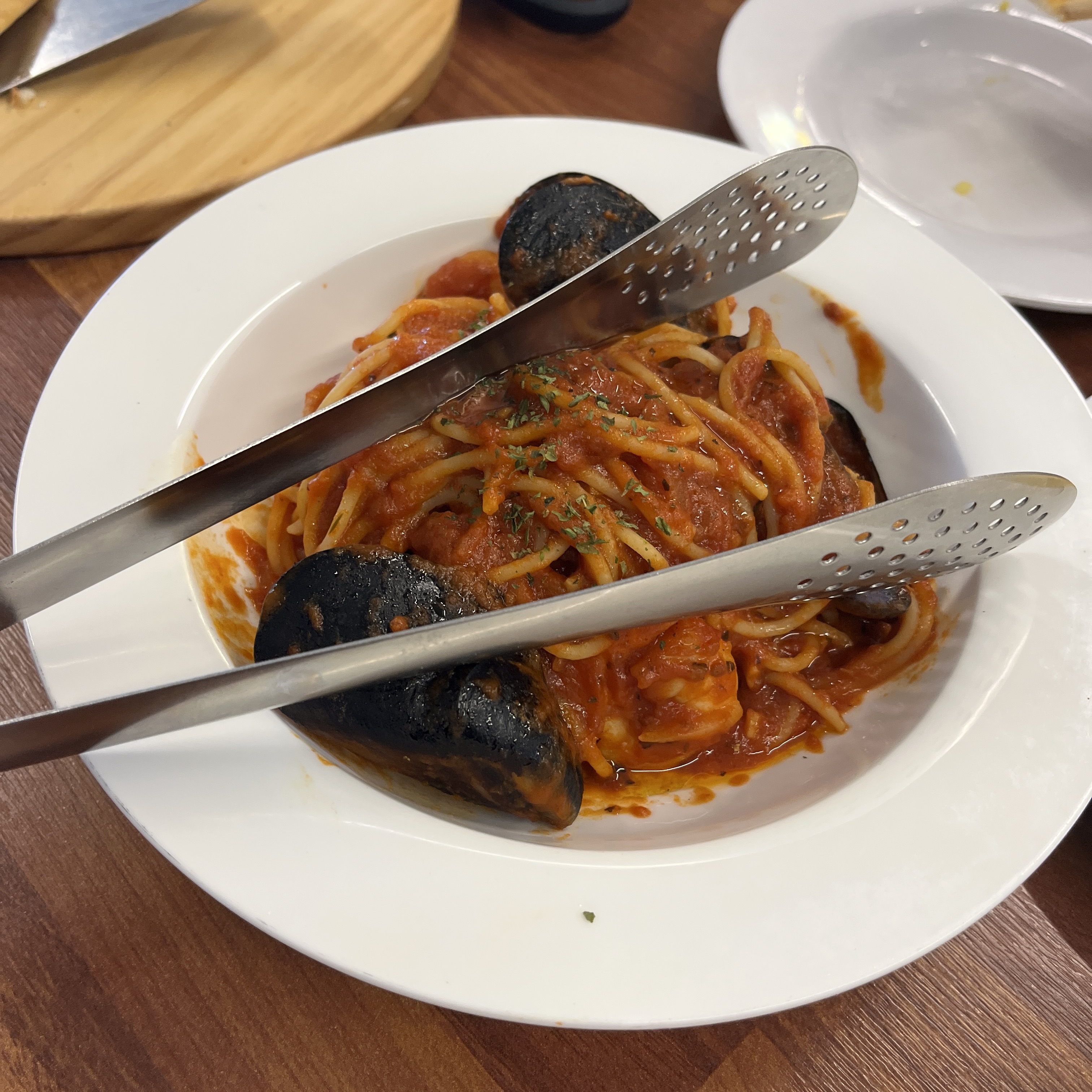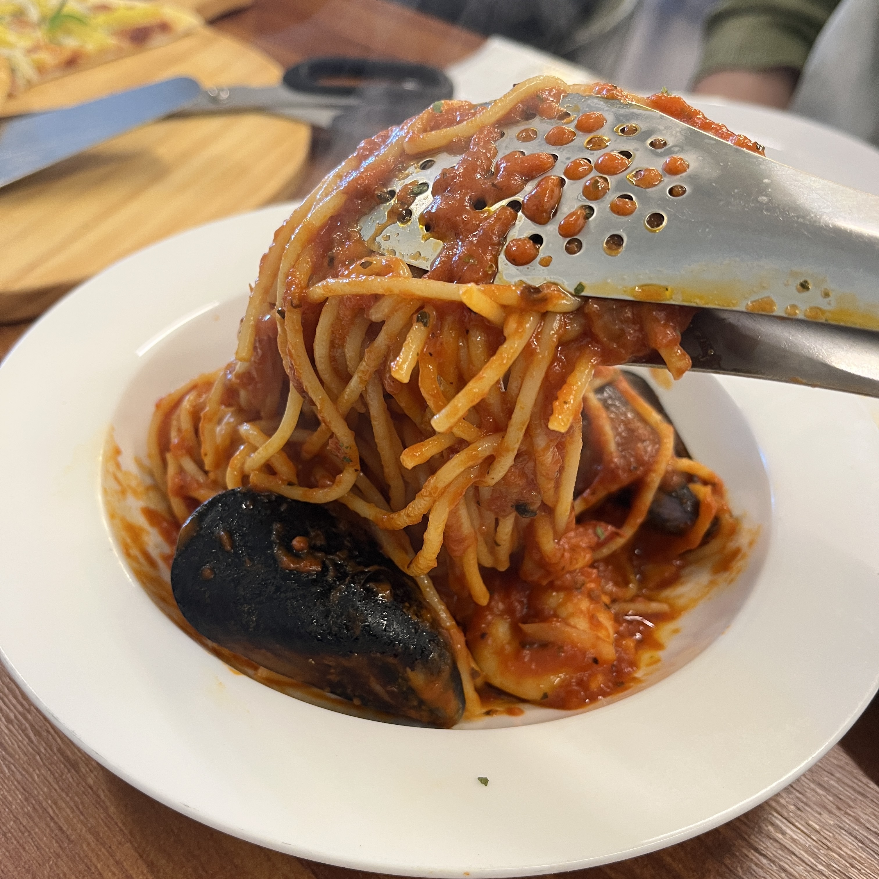 베이컨의 향이었던 것 같은데, 고기의 찐한 육향이 함께 느껴지는 매력적인 스파게티였습니다.