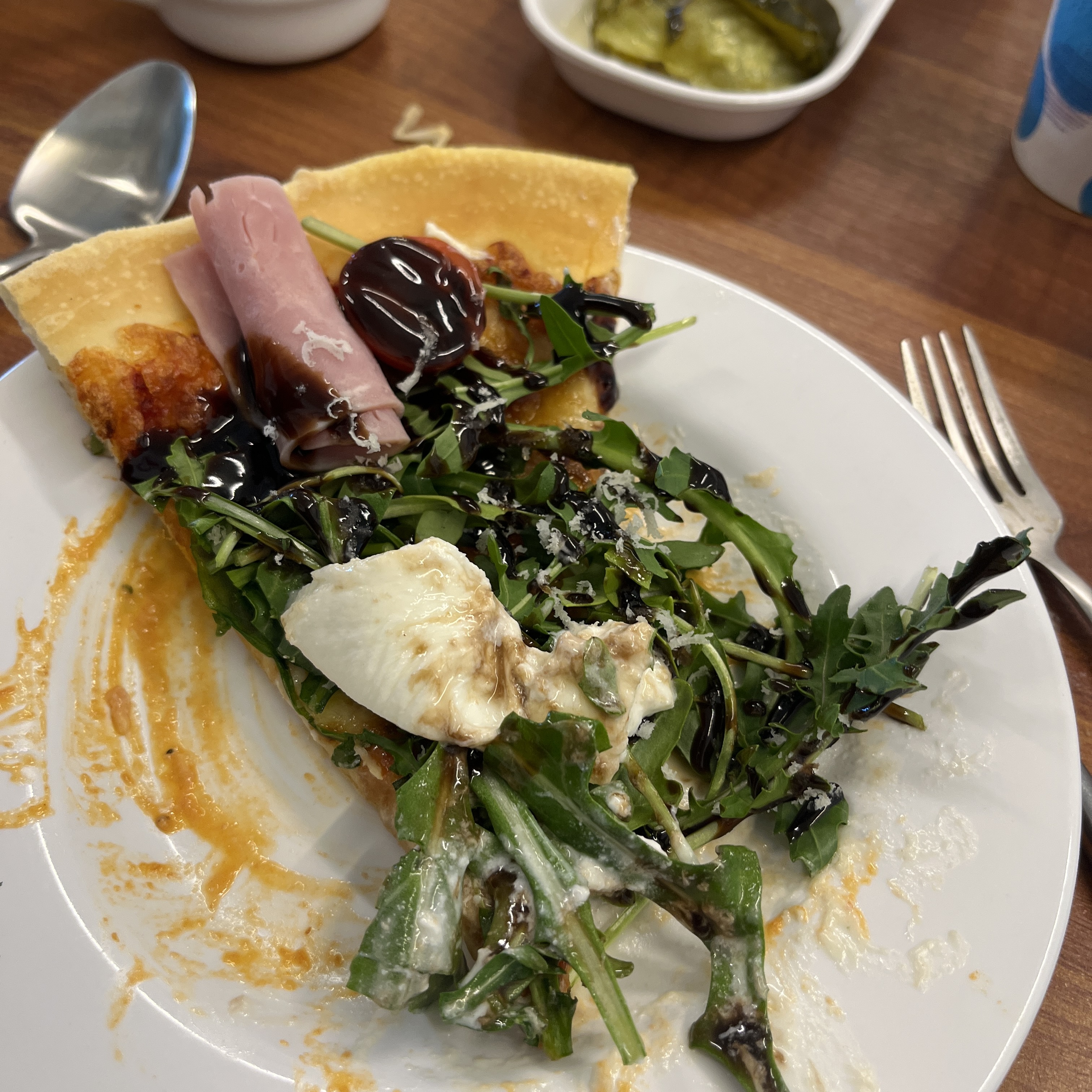 신선한 루꼴라에, 얇게 저며진 햄 한장에, 프레쉬한 치즈까지 얹어지니..