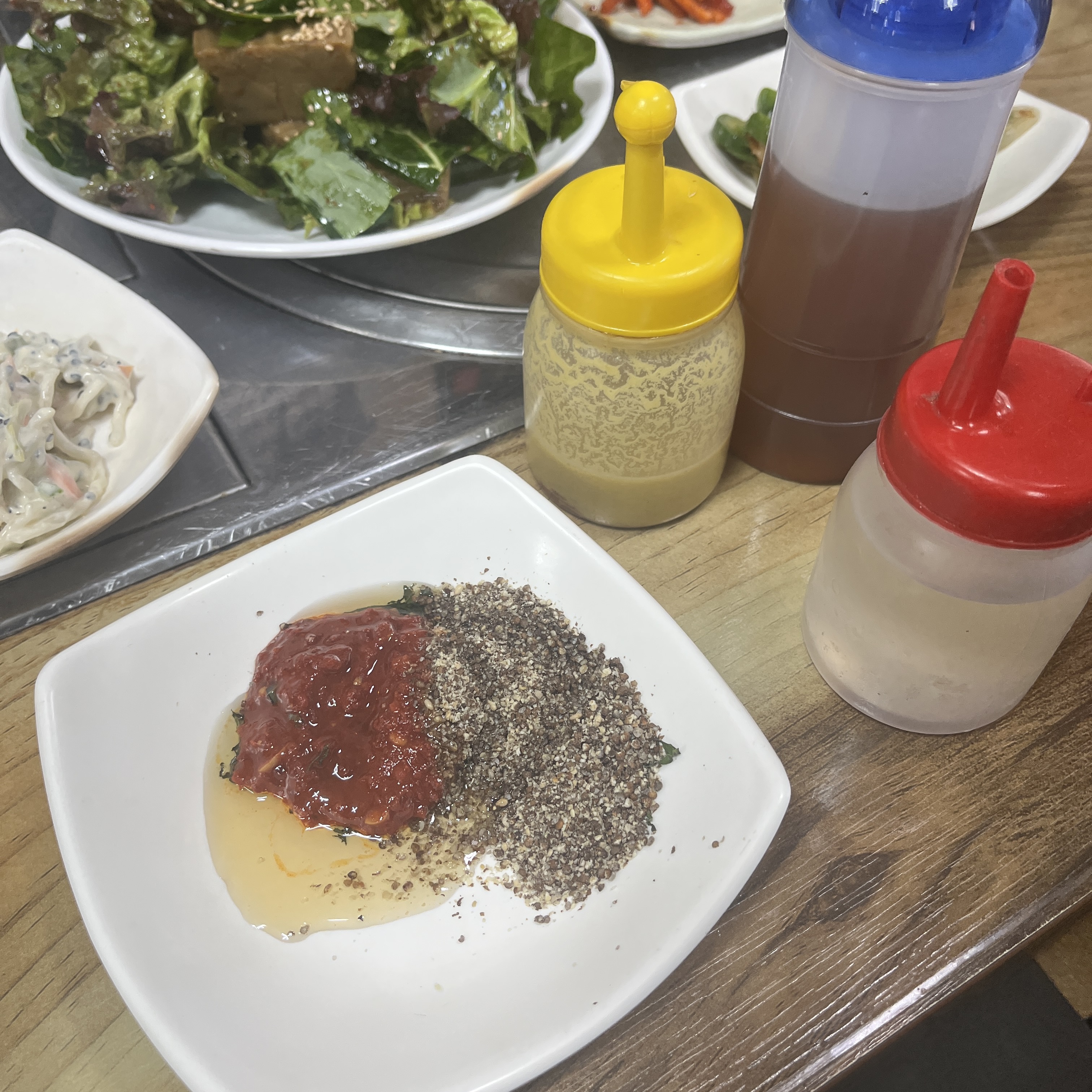 요 소스에 참기름 살짝 가미하고요, 겨자도 취향에 따라 살짝 가미하라고 하셨습니다.