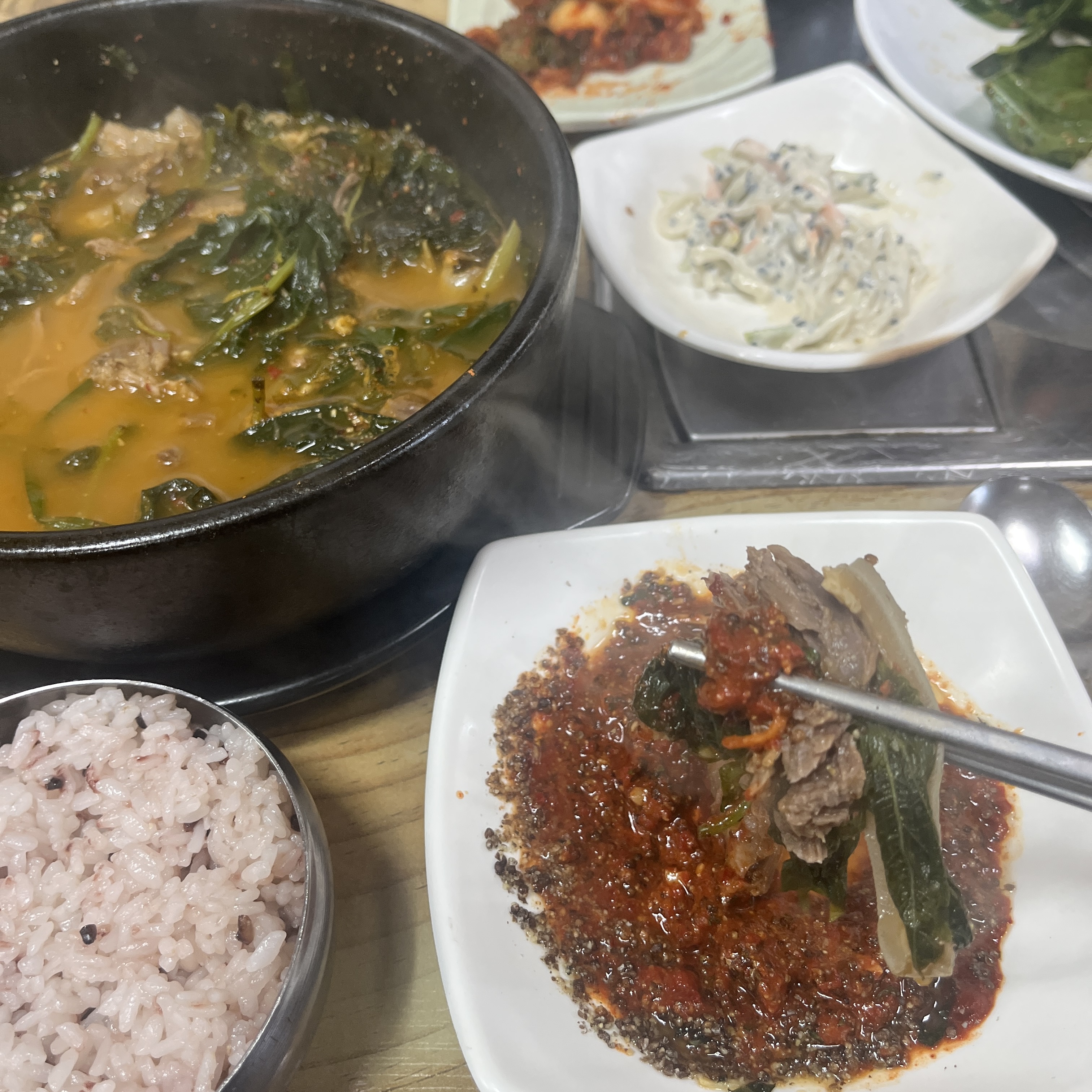 맛있어 맛있어 감탄하면서 결국 뚝배기그릇 바닥 보일떄까지 몽땅 긁어먹었네요.