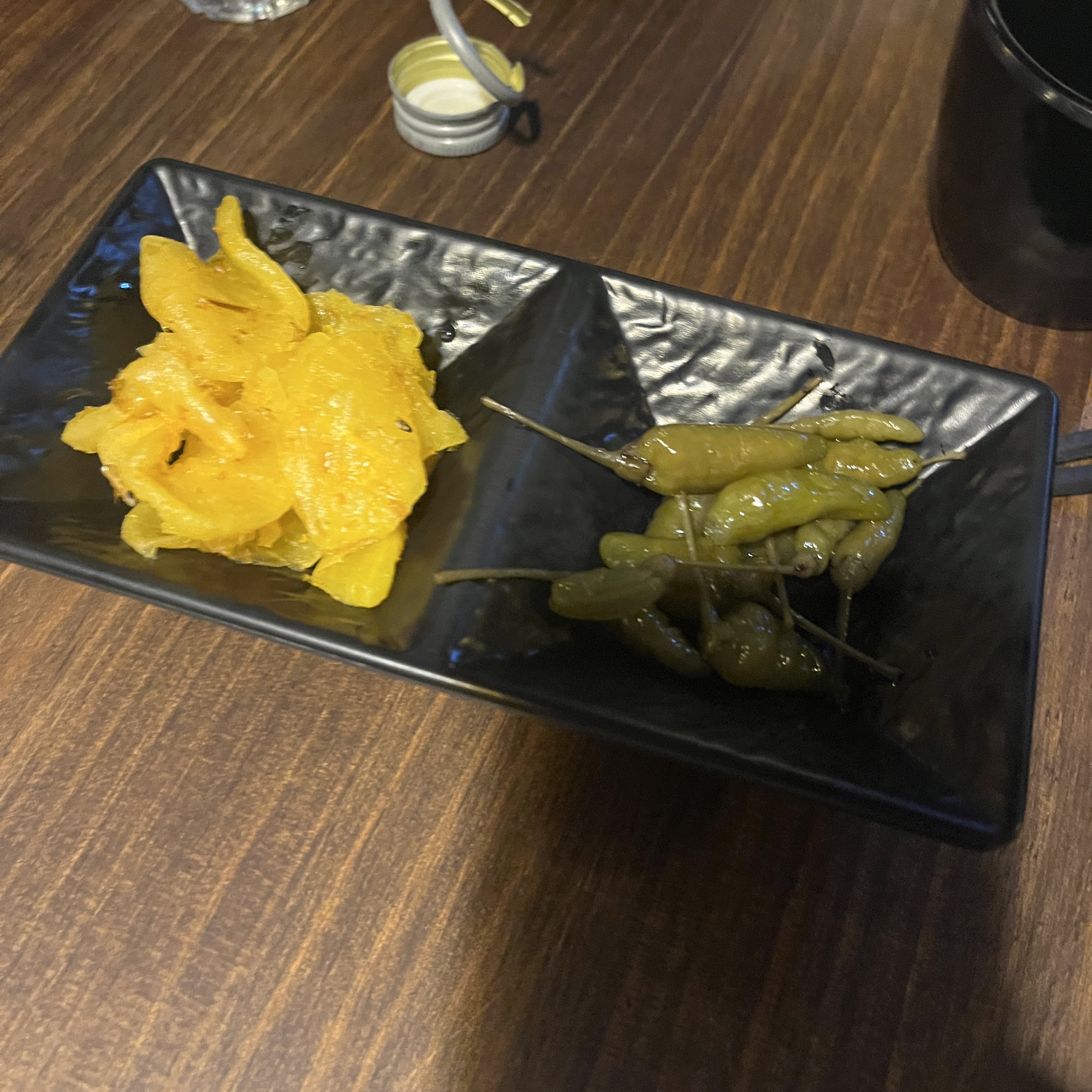 기본 안주로는 가쓰오부시?가 가미된 단무지가 제공되는데, 저게 별미입니다.