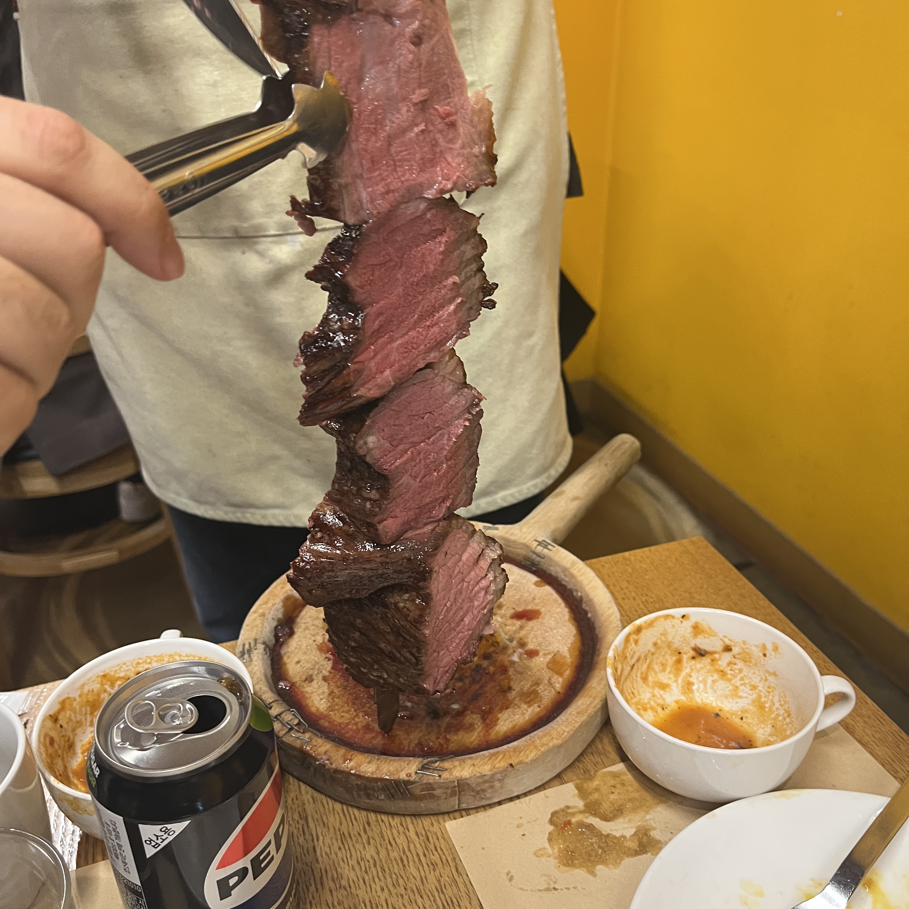 고기 썰떄마다 터져나오는 육즙이 아주 도랐습니다.