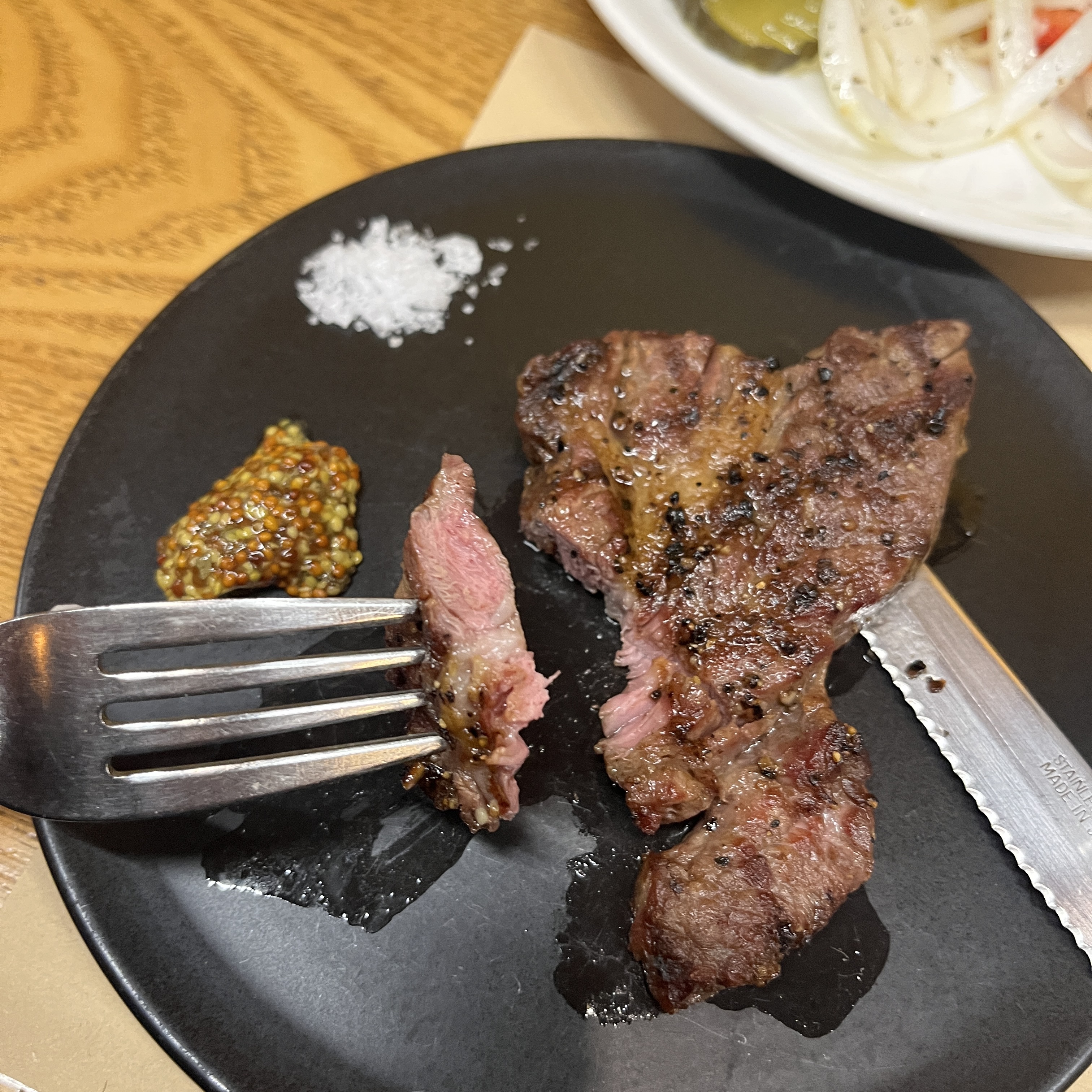 자, 스테이크로 가볍게(?) 시작해줍니다.