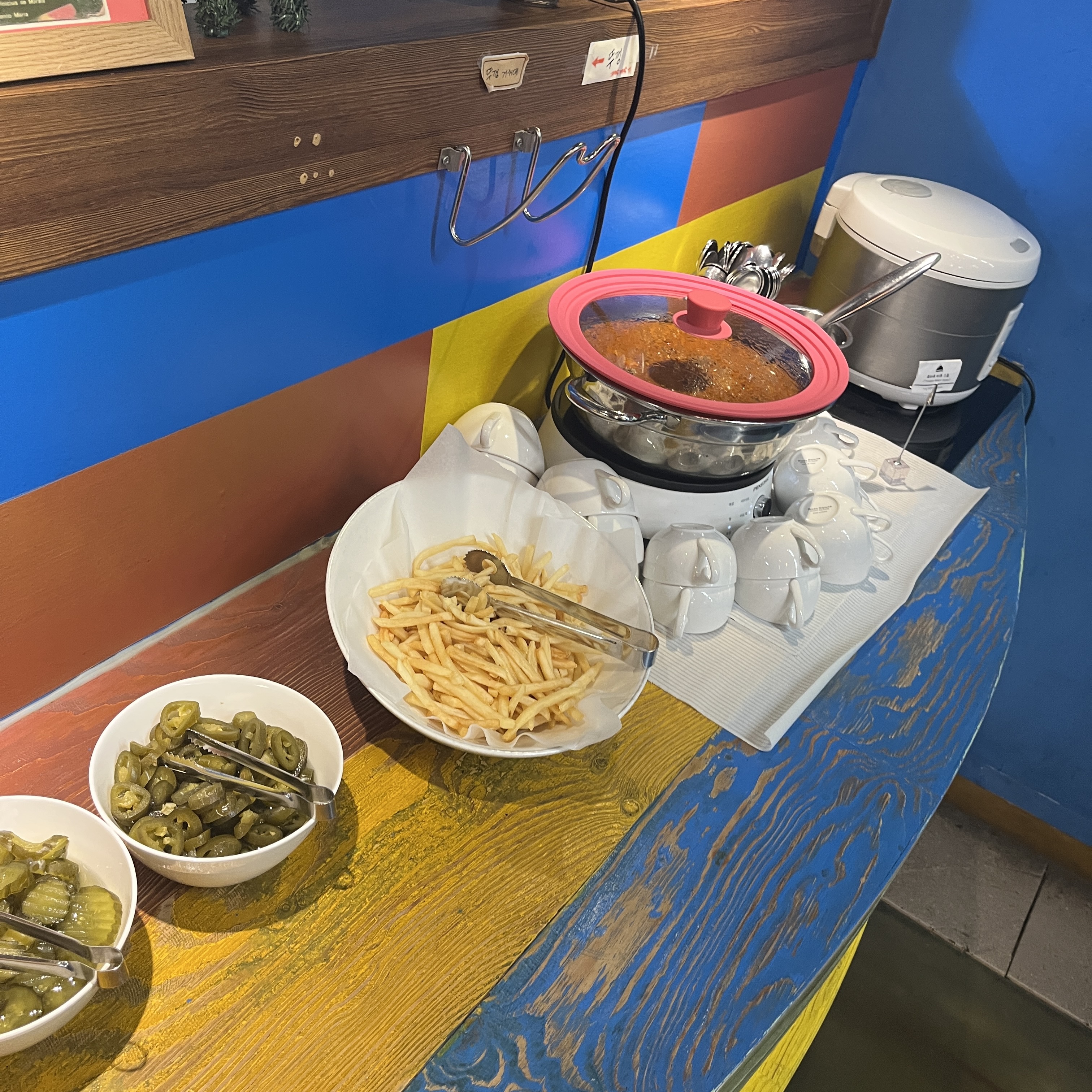 사장님께서 종류별로 바베큐 가져다가 썰어주시는 재미가 있구요,