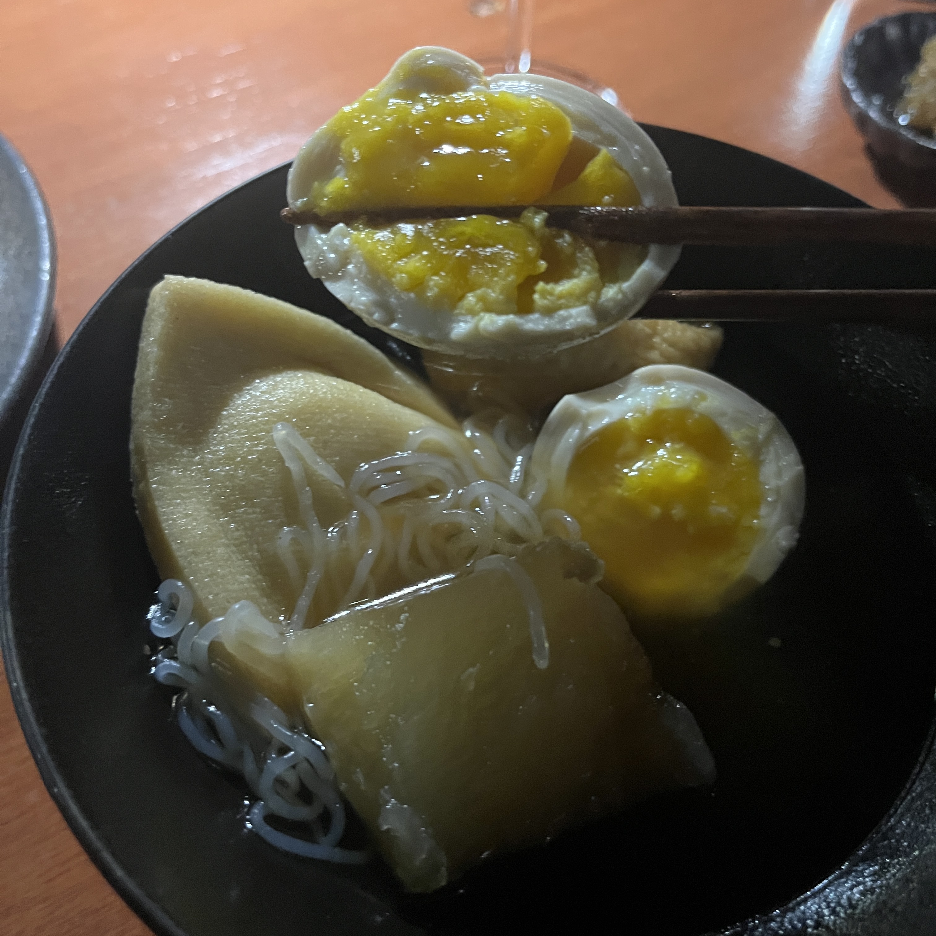 전 두부오뎅만 나오는 줄 알았는데, 기본적으로 반숙계란, 곤약국수, 유부, 무까지 같이 나오더라구요.