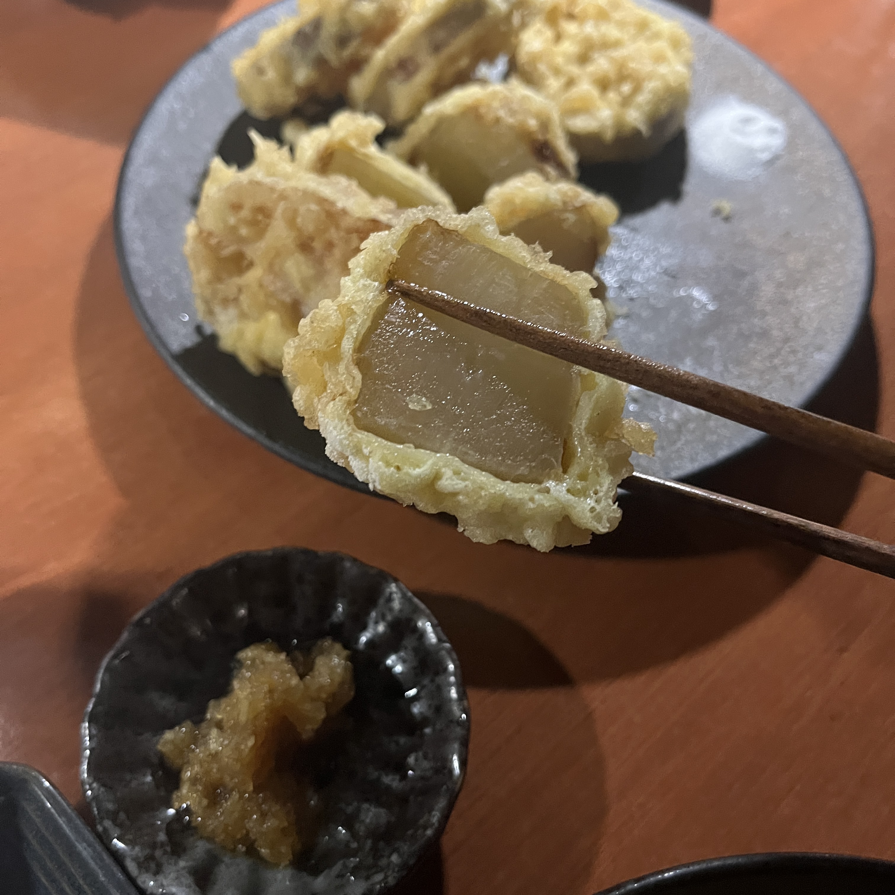 겉은 바삭한데, 무조림 한입 베어무는 순간 그 촉촉한 무에서 나는 기분좋은 맛이.. 왜 다른 이자카야에선 이 맛있는 메뉴를 안할까요?