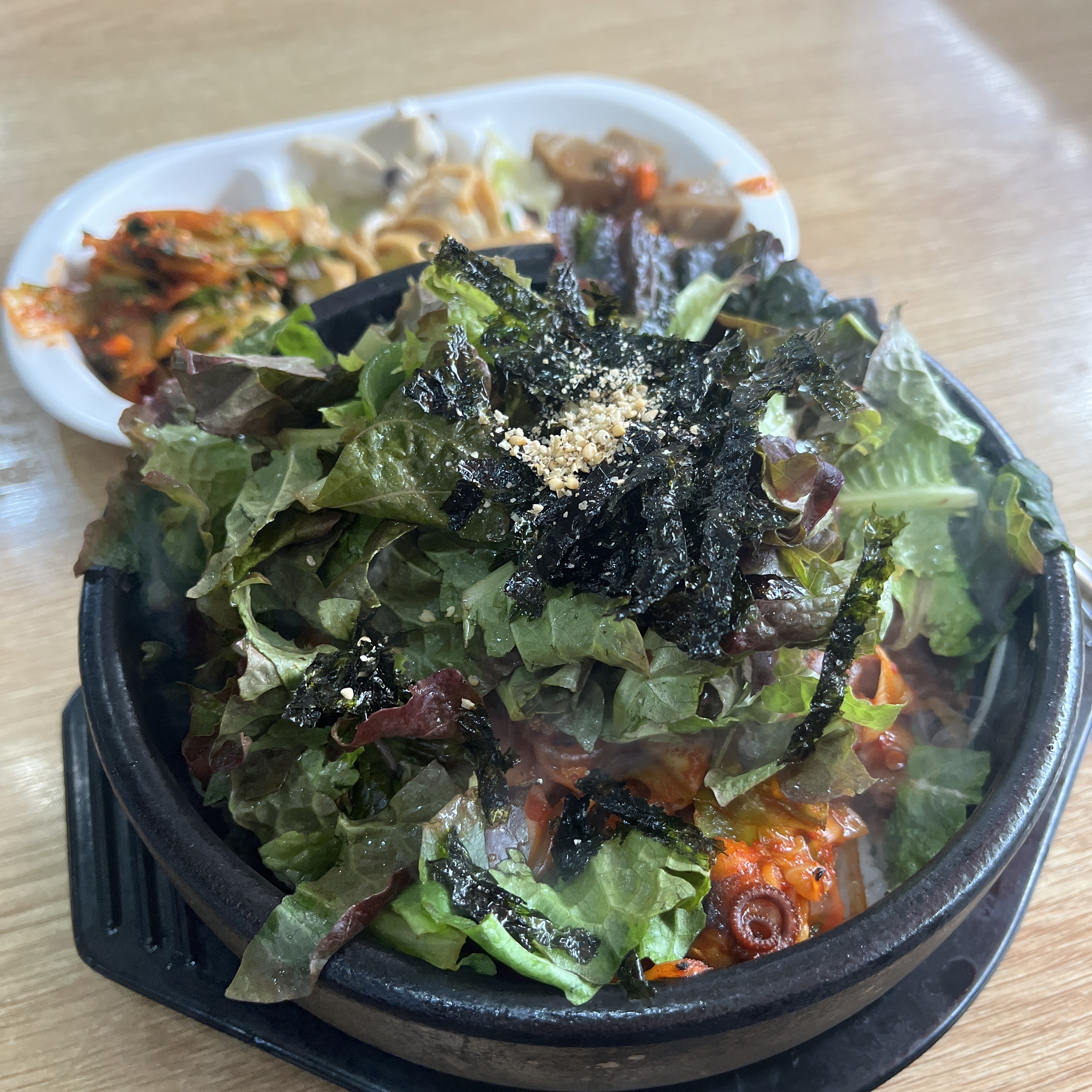 돌솥도 엄청 크구요, 밥이랑 낙지도 아주 많이 들어있는데, 위에 얹어지는 상추의 양이 아주 압권입니다.