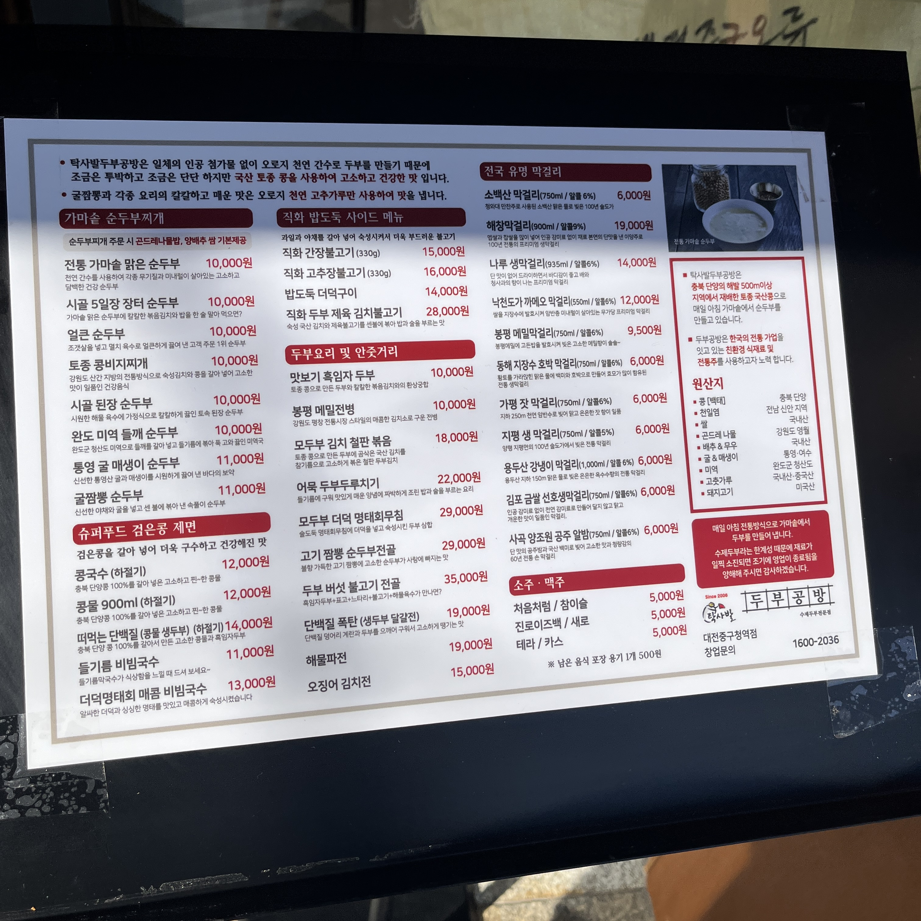 역대 두부전문점에서 본 메뉴판 중 가장 복잡한 메뉴판같네요 ㅋㅋ