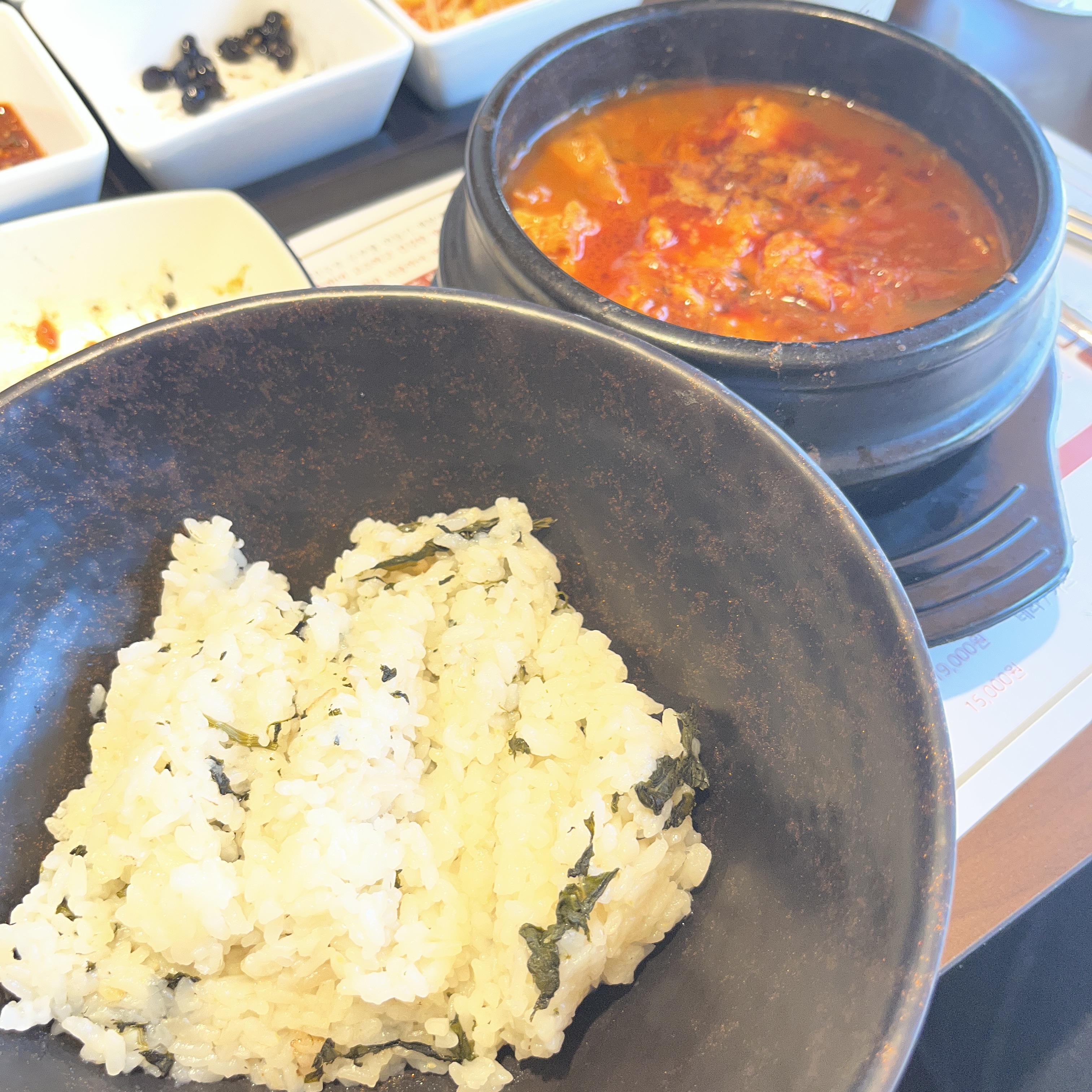 저거랑 곤드레밥이랑 합쳐지면 ㄹㅇ 맛있겠다 생각이 들은 다음 제 맑은 순두부를 받았습니다.