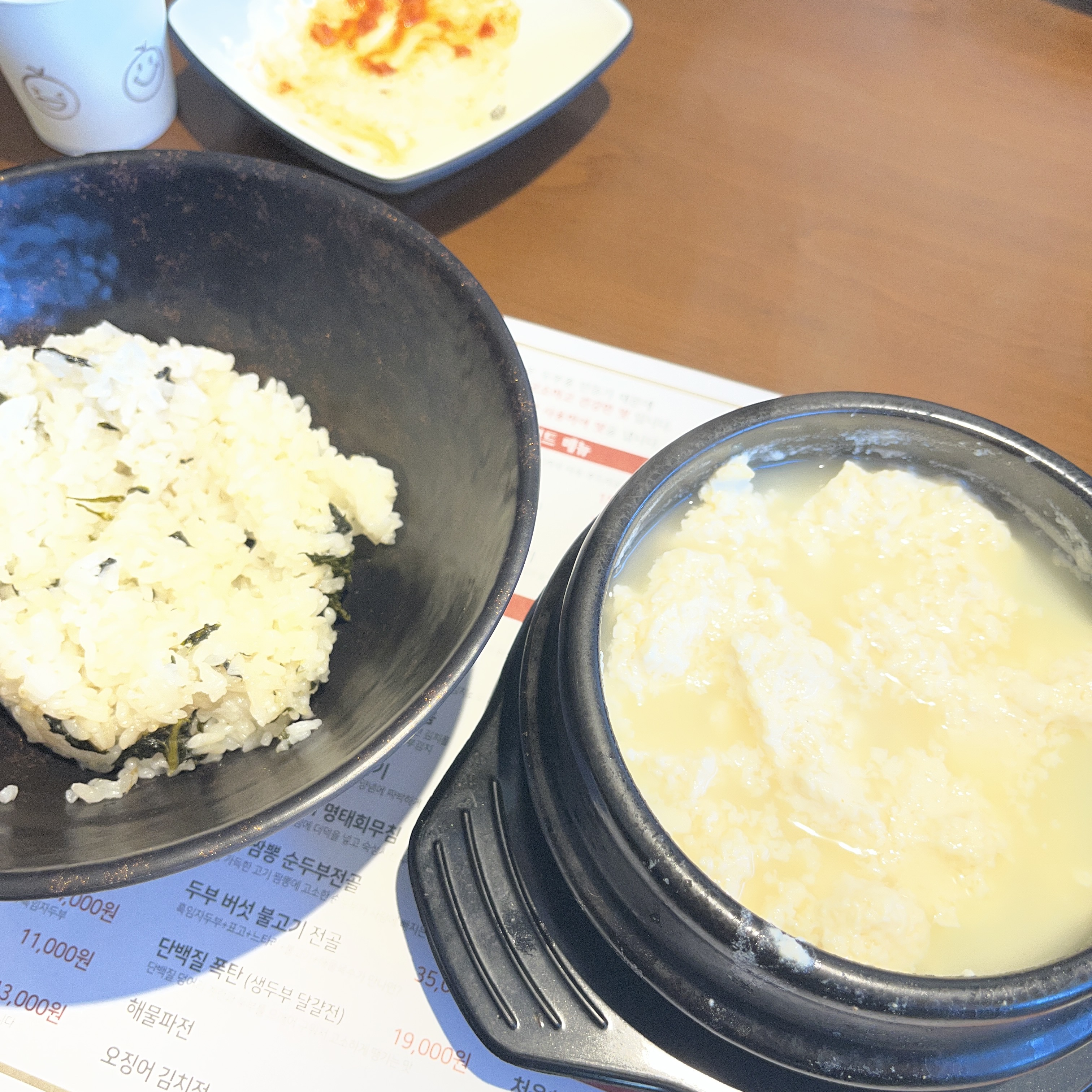 저는 전통 가마솥 맑은 순두부로 시켜봤습니다.