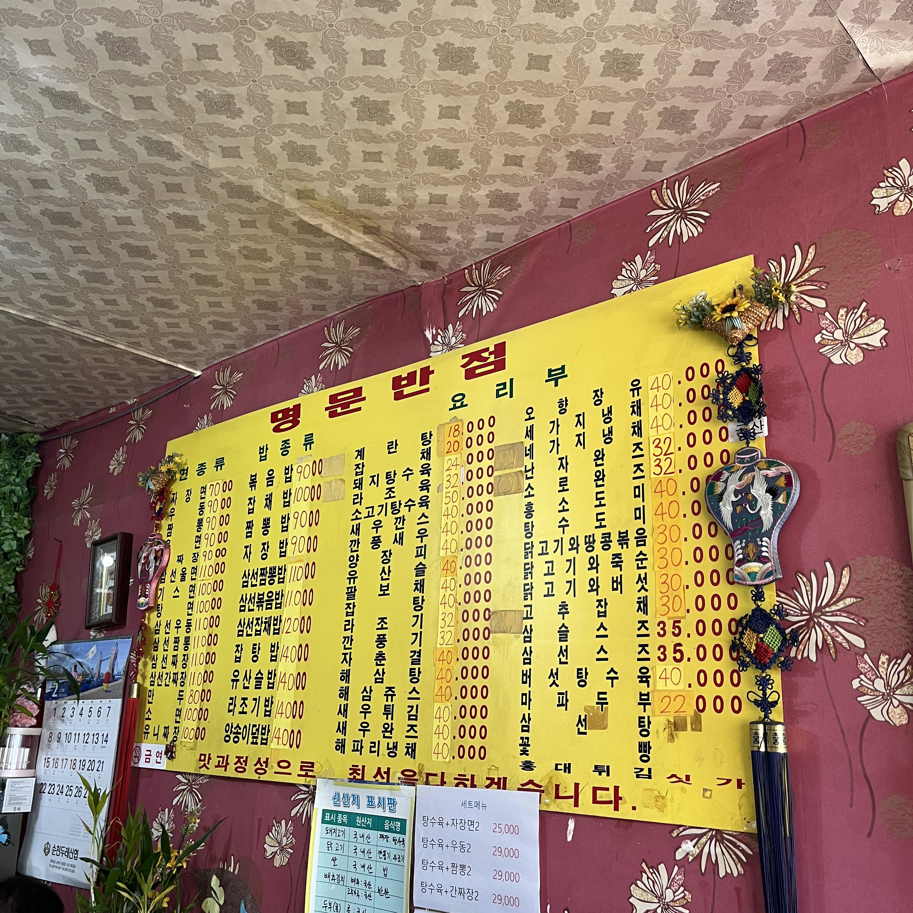 거의 70년대에서 타임슬립한 느낌이에요 ㅎㅎ 메뉴에 닭고기와땅콩볶음은 도대체 무슨메뉴일지 상상도 안되네요 ㅋㅋ