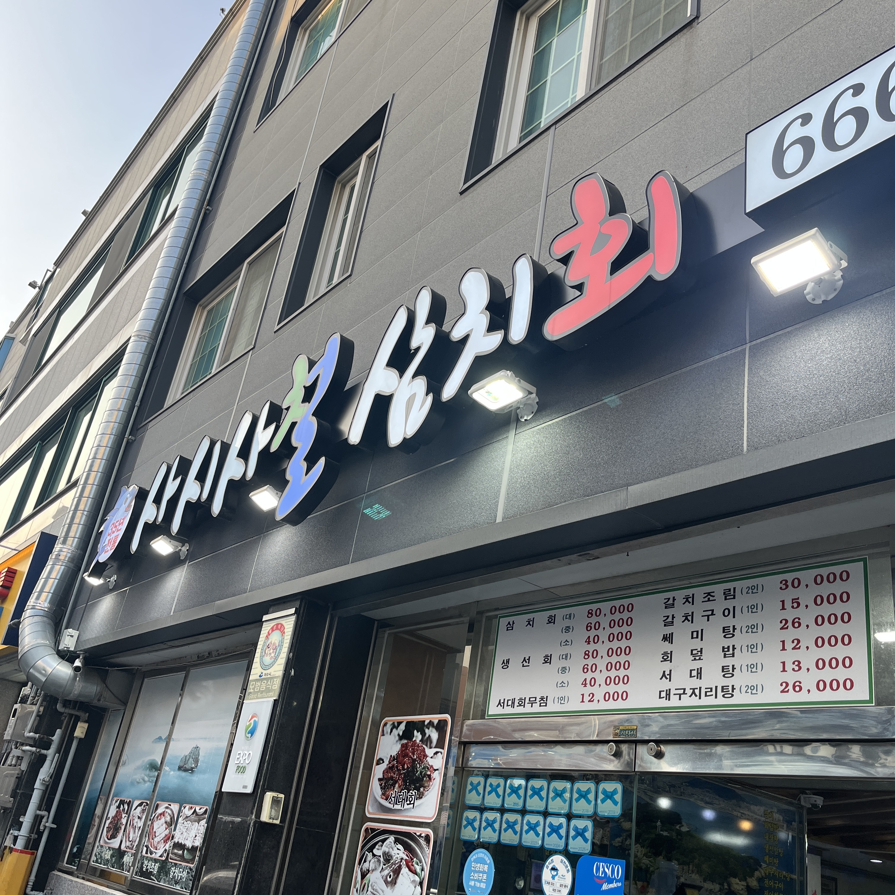 여수 교동 이순신광장 인근의 삼치회 맛집 '사시사철삼치회'입니다.