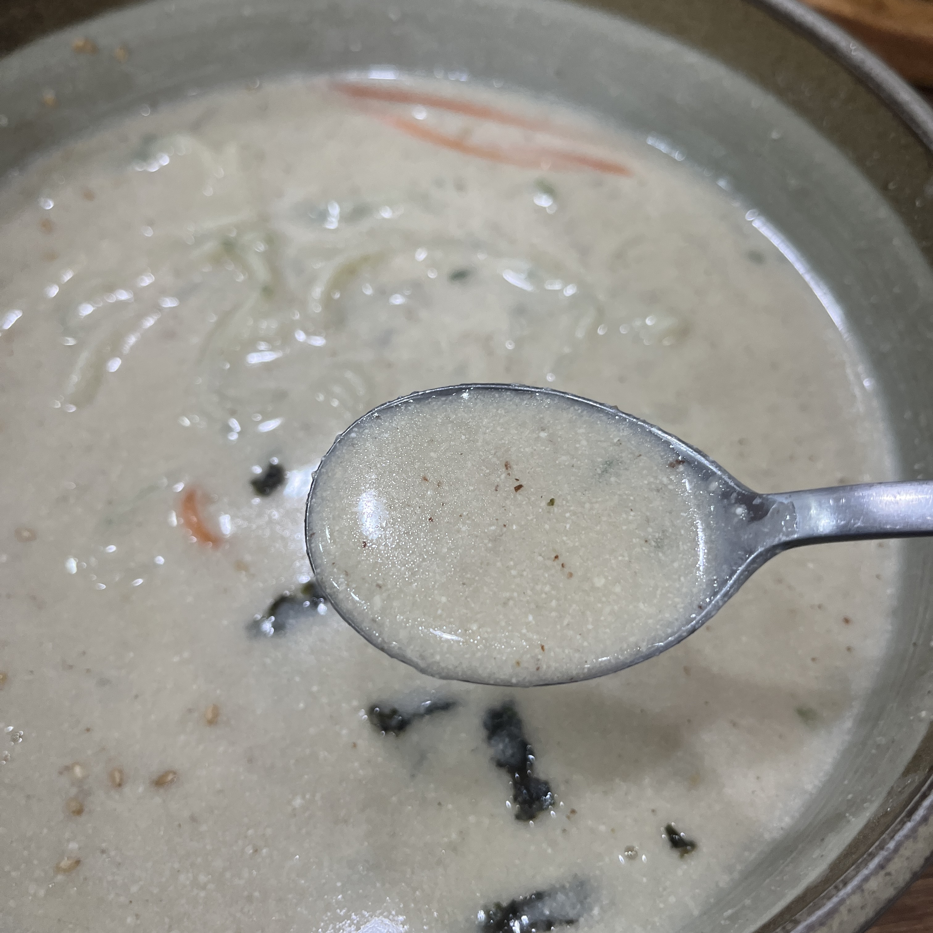 들꺠칼국수 국물은 저렇게 비지찌개스럽게 진하게 나와야 들깨칼국수답죠 ㅎㅎ