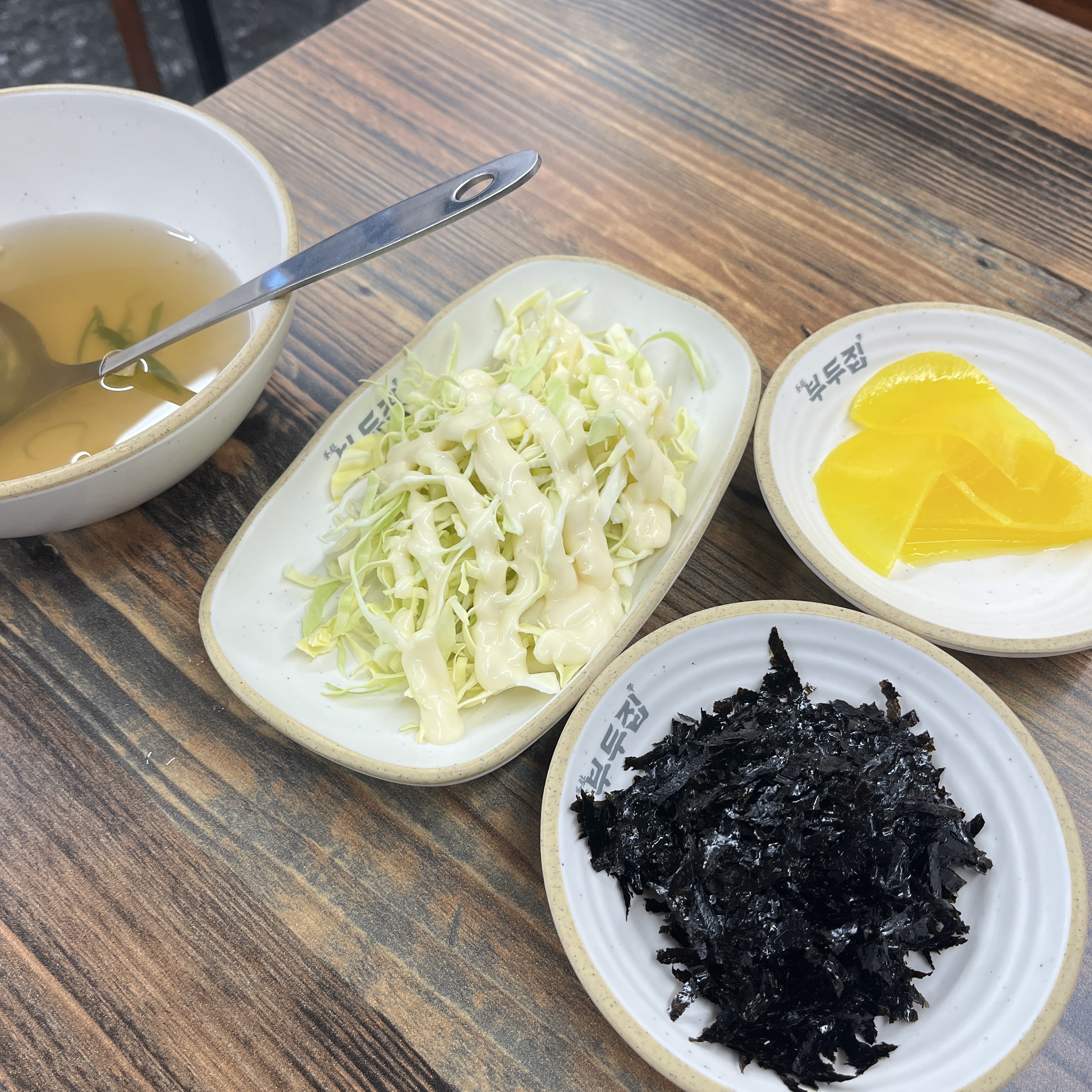 기본 찬은 단촐합니다. 양배추마요네즈샐러드가 반갑네요 ㅎㅎ