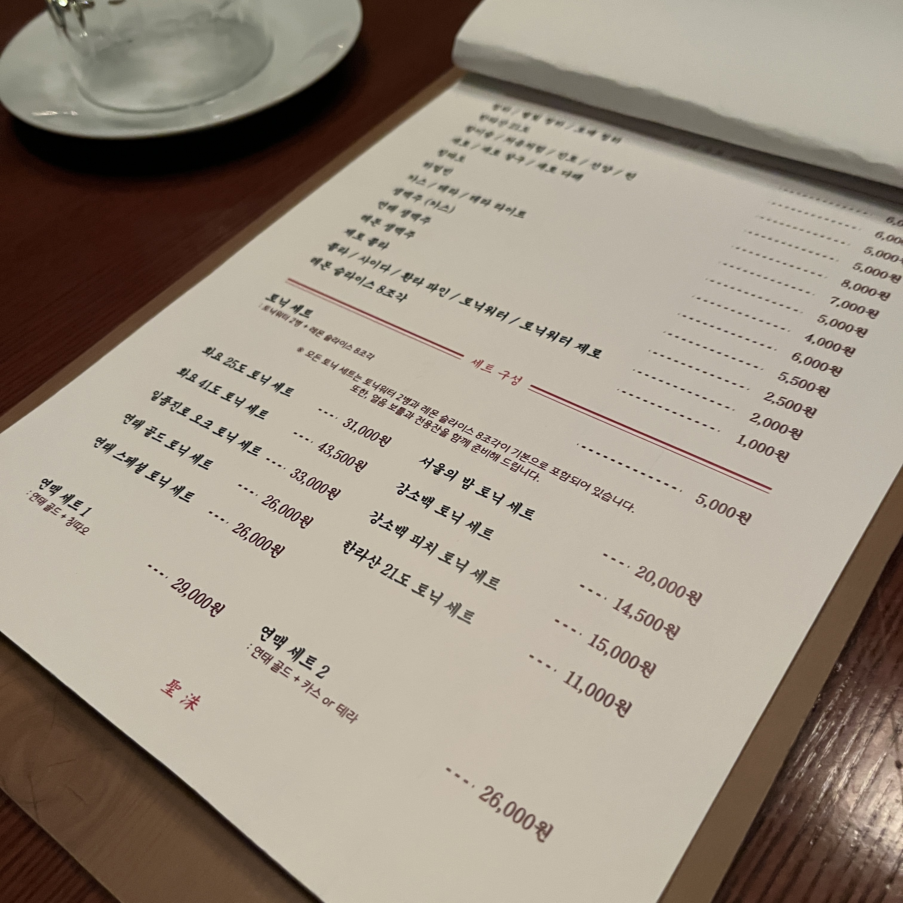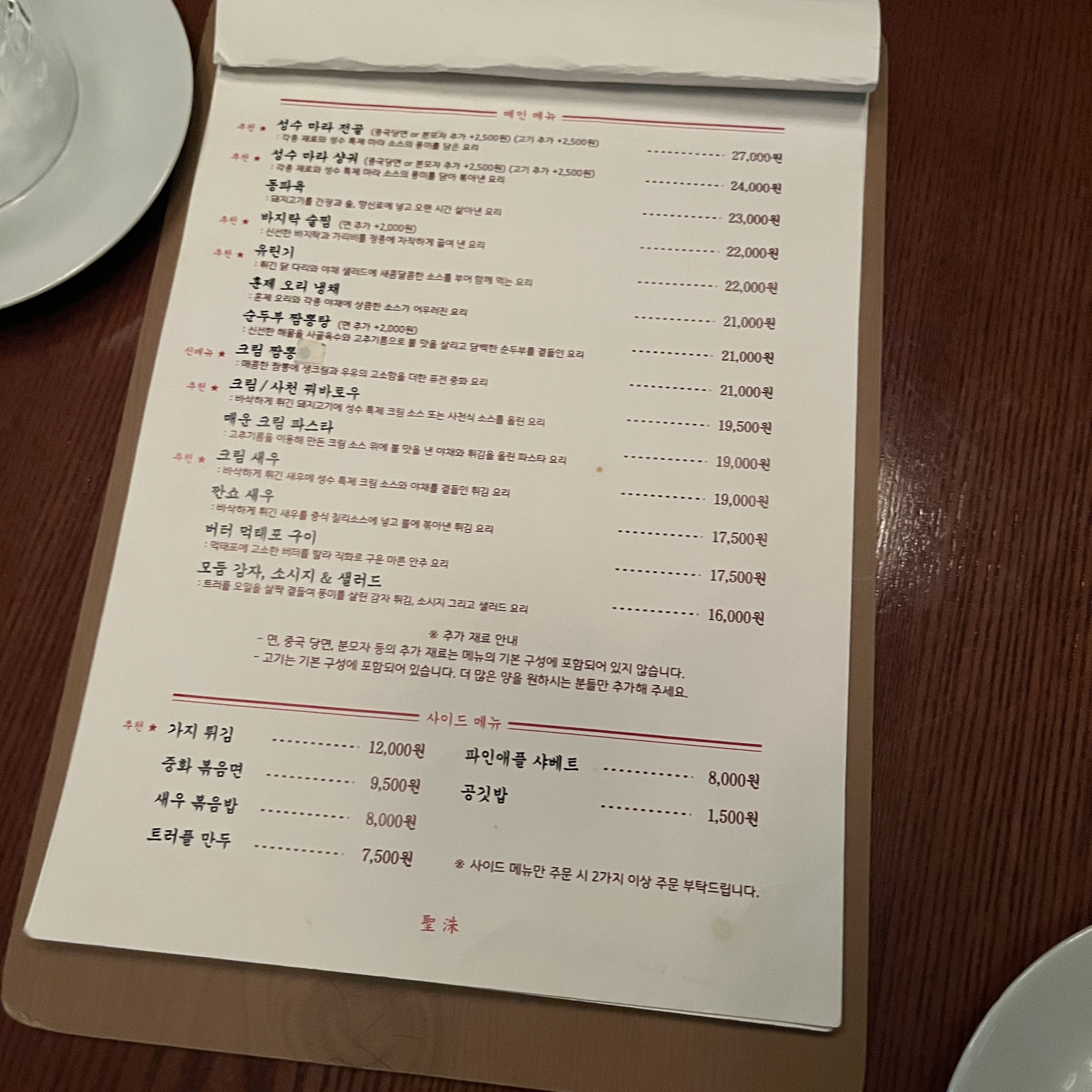 성수 메뉴입니다.