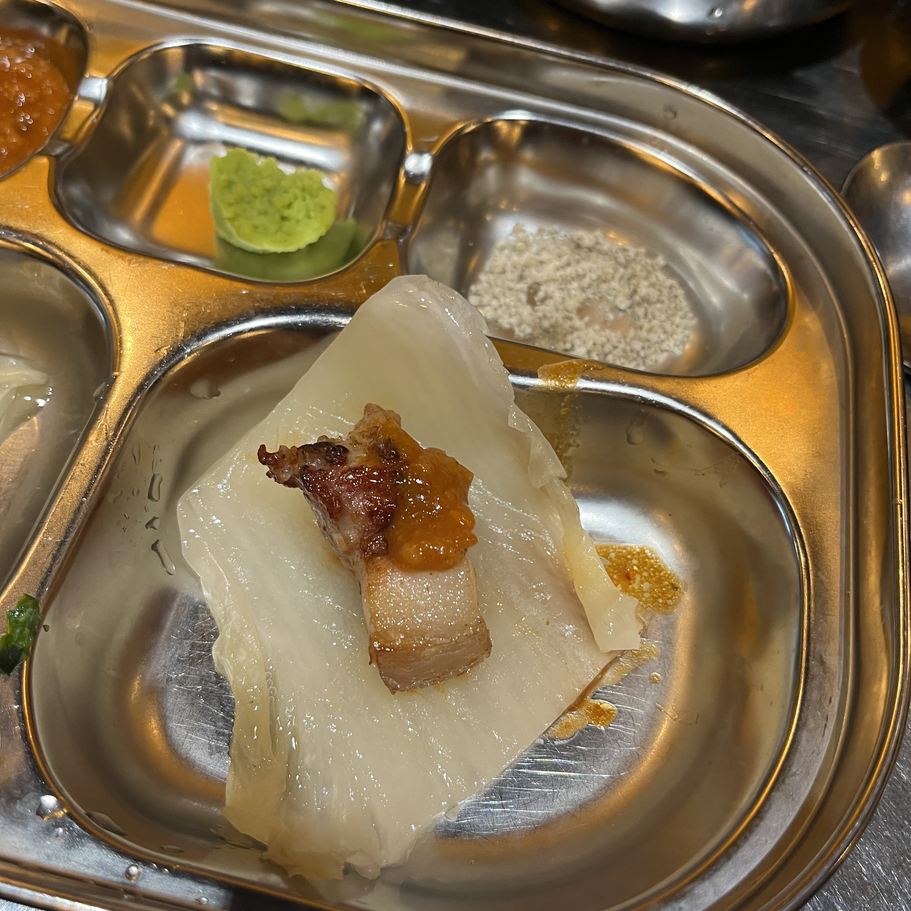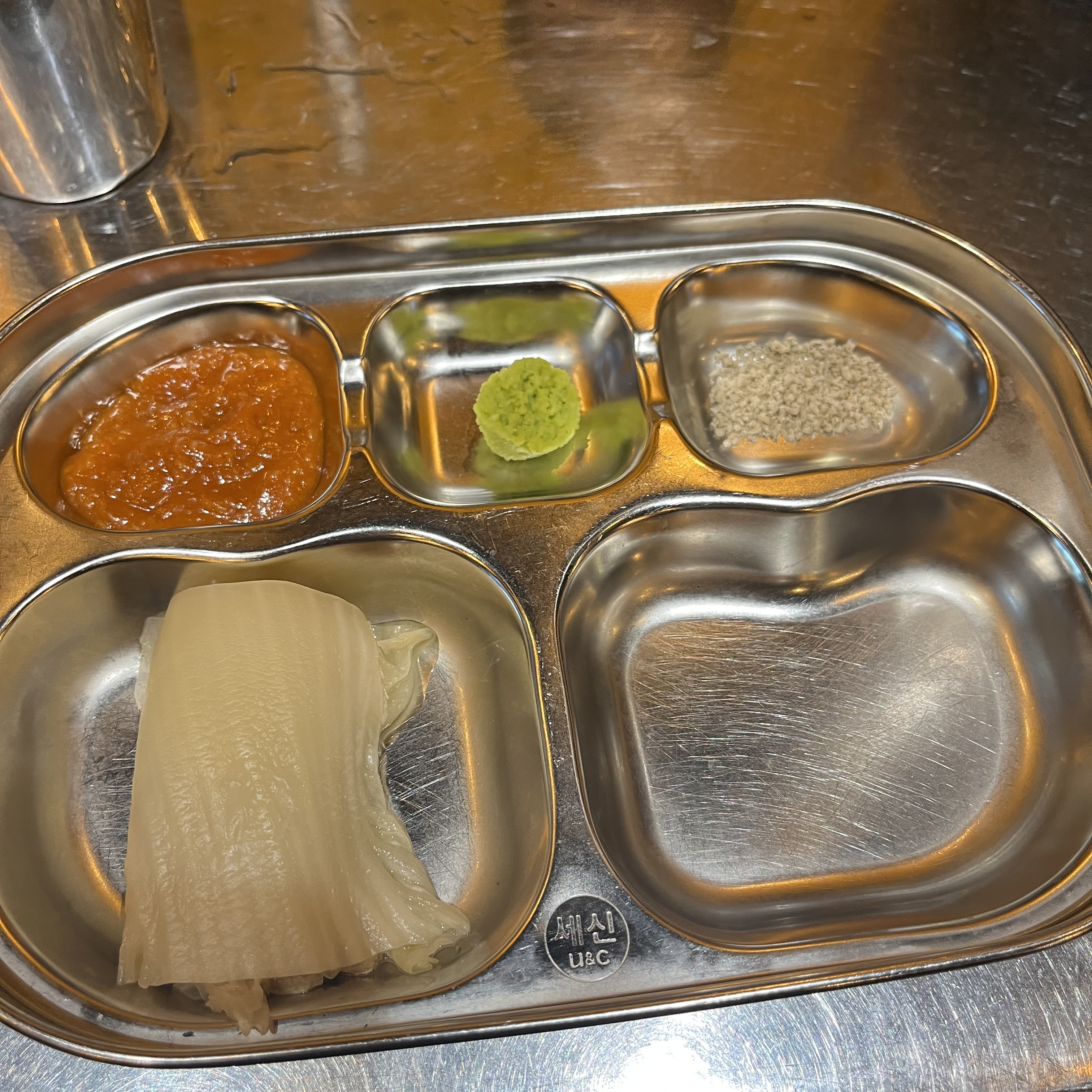 진미오겹살의 특징은 각자 식판이 있다는 것 ㅎㅎ