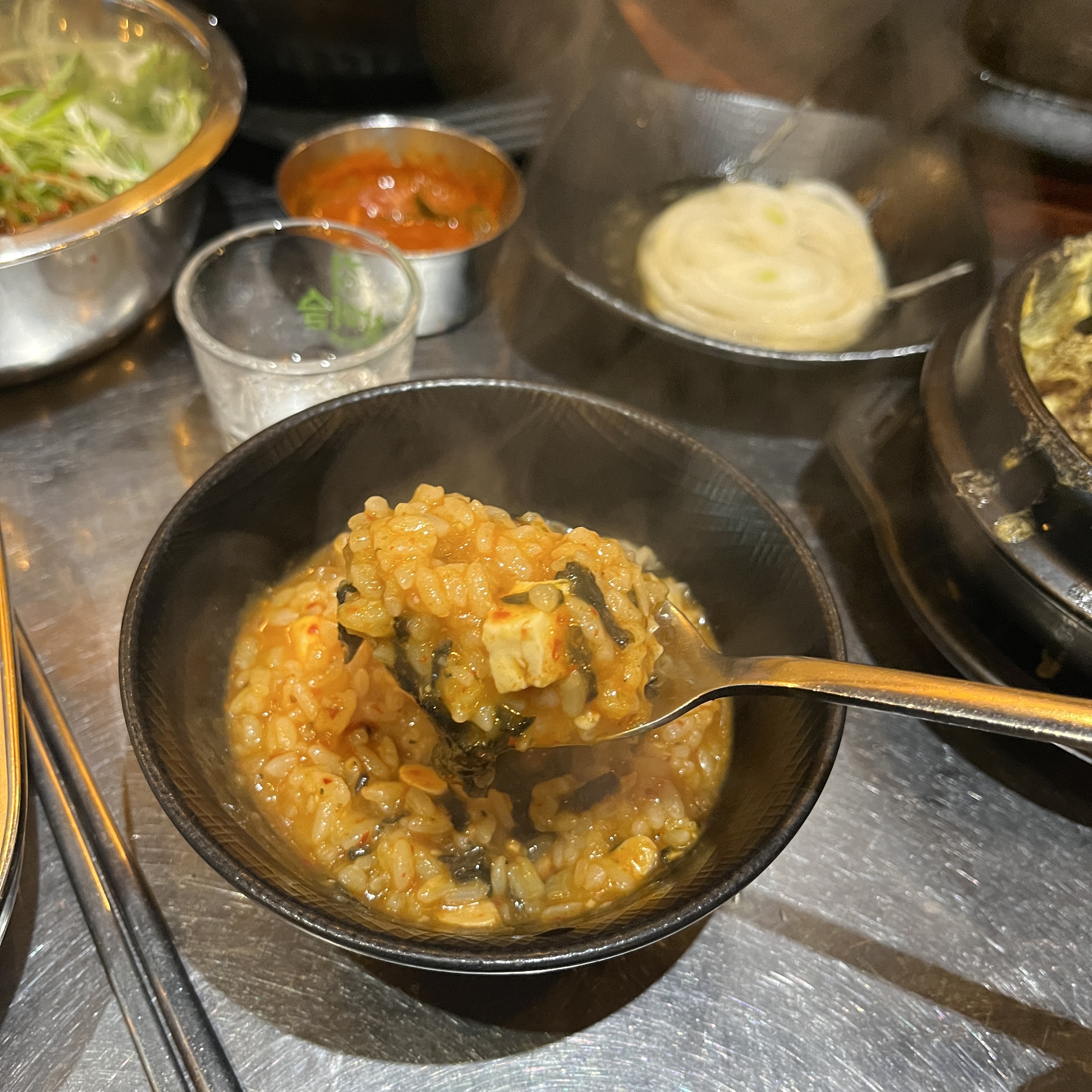술안주로도 아주 좋고, 고기 다 먹어갈 쯤 부족한 탄수화물 챙기며, 된장으로 속도 편하게 해주기도 딱 좋은 맛이엇습니다.