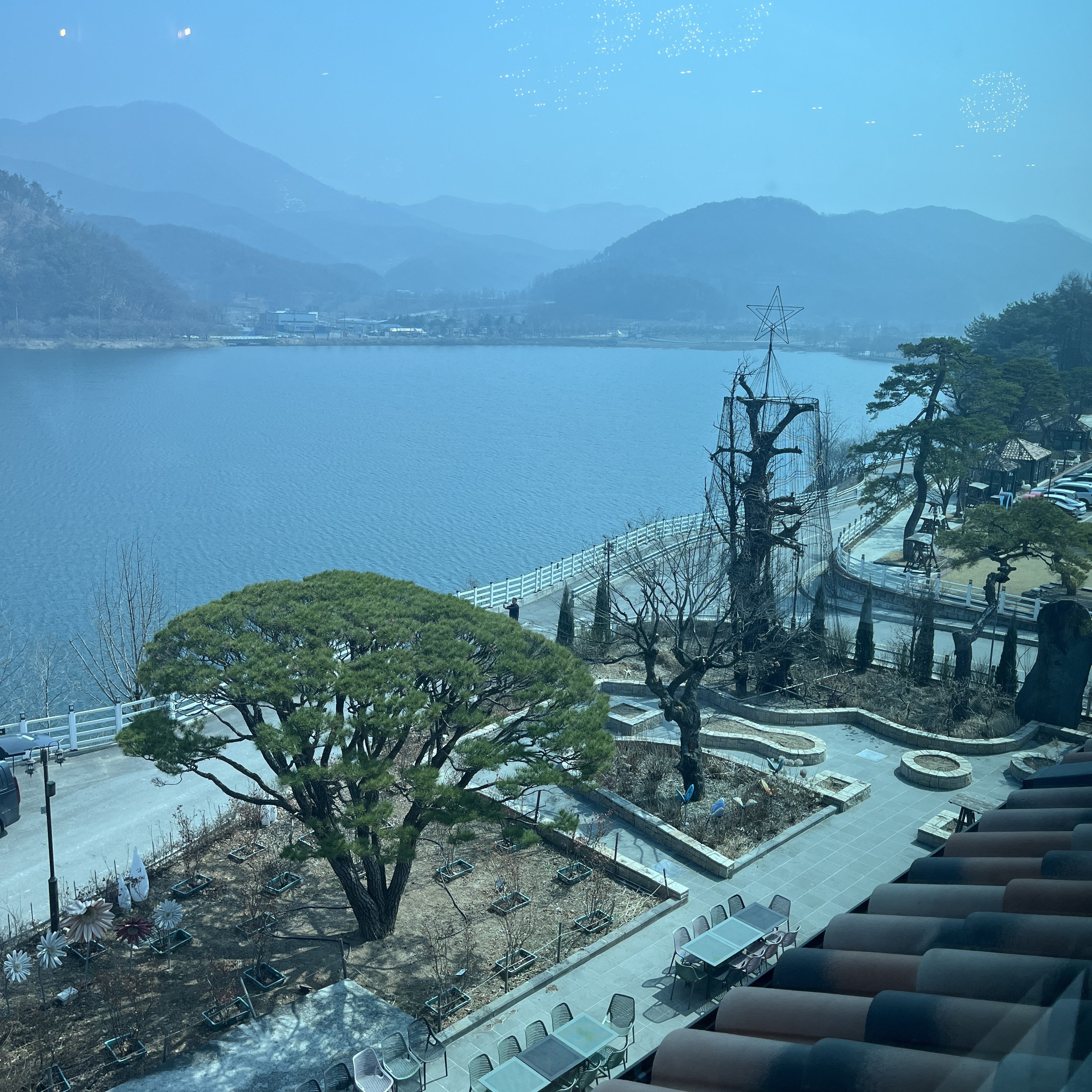 저수지 뷰가 속을 뻥 뚫리게 해줬습니다.ㅎㅎ