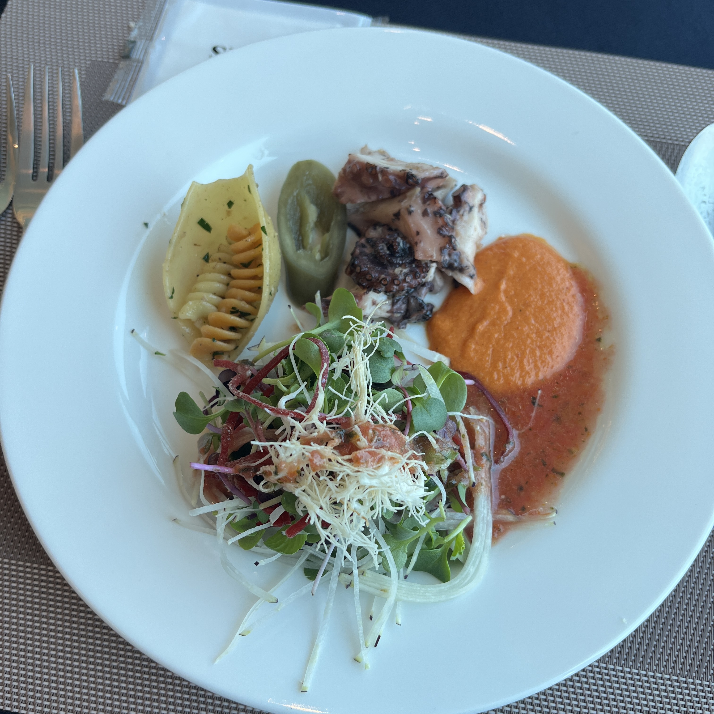 식감과 맛 두가지 다 잡은 문어와, 치즈향이 진하게 나는 샐러드, 거기에 상콤한 소스까지.