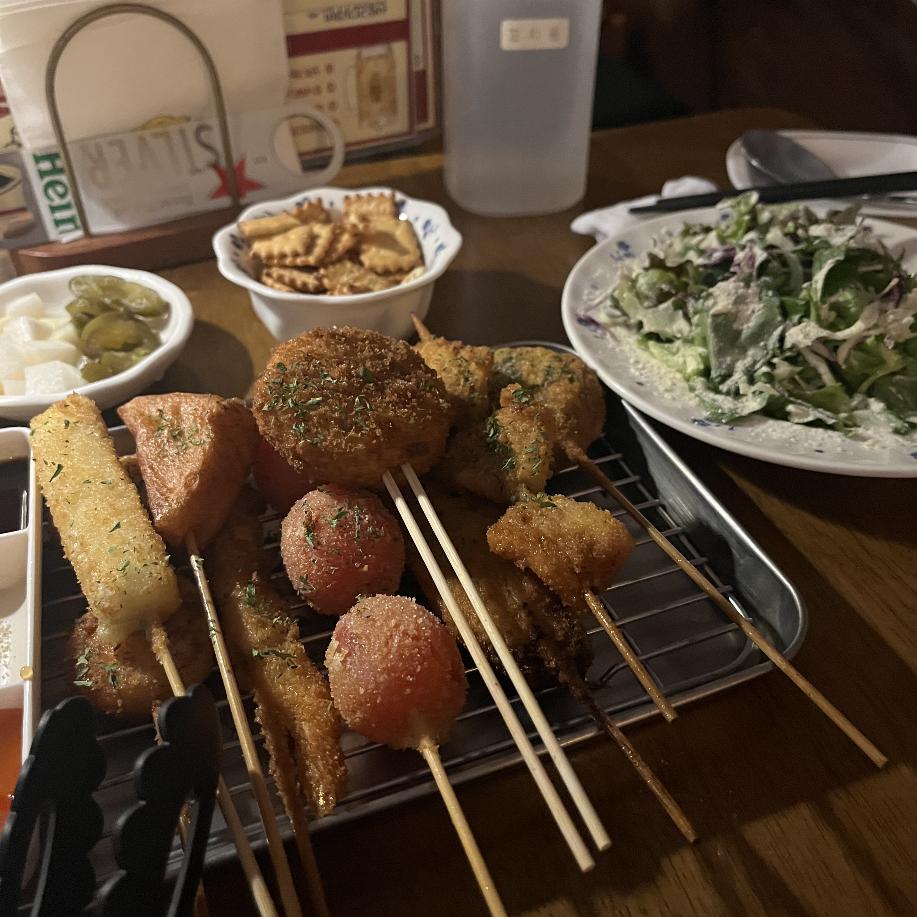 쿠시카츠가 메인인 듯 했고요, 다양한 안주류가 준비되어 있었습니다.