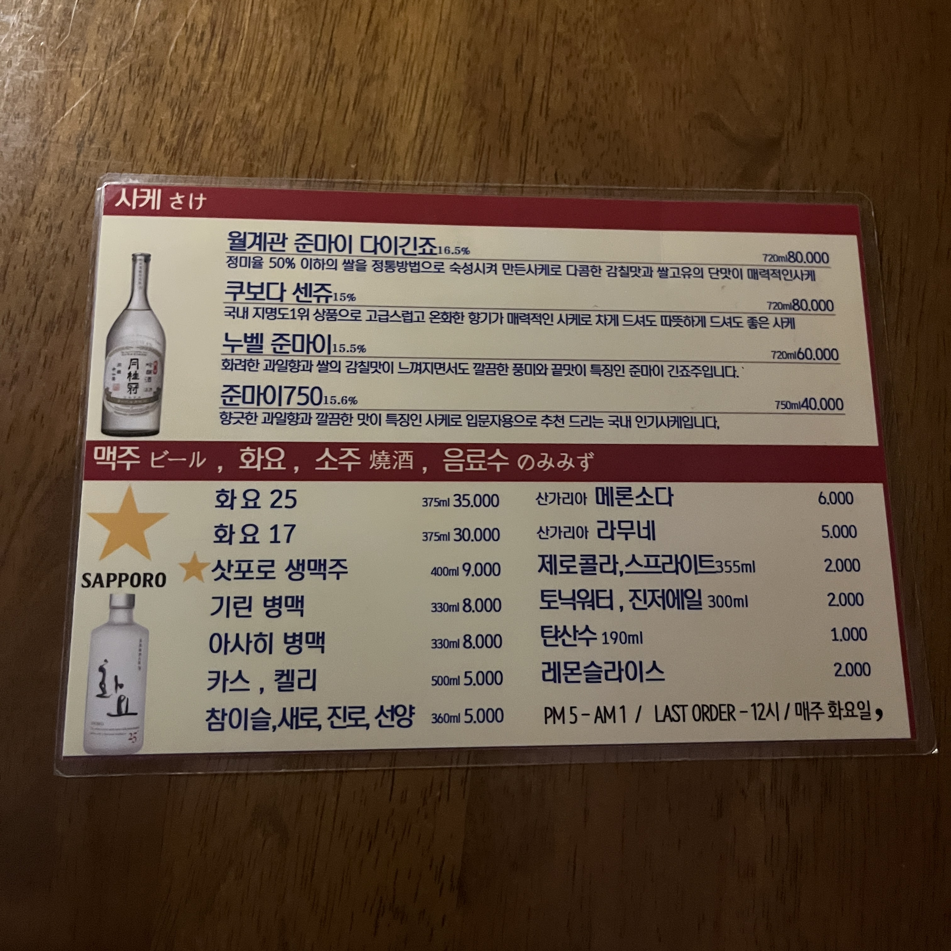 요 메뉴판도 일본에서 느꼈던 그 감성 그대로였어요 ㅎㅎ
