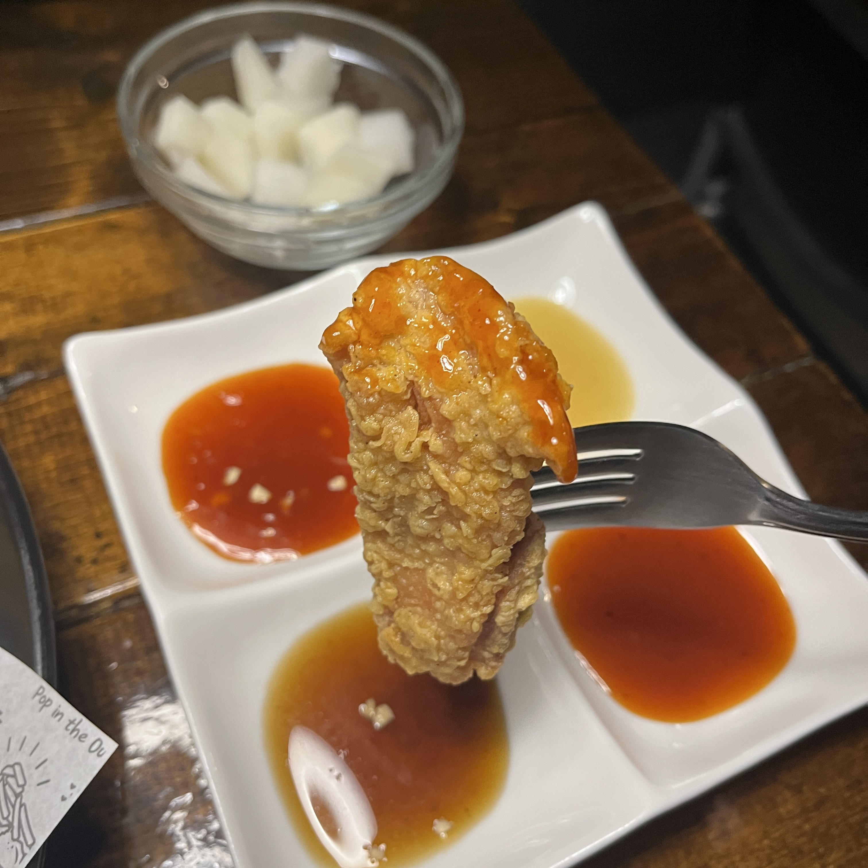 전 보통 후라이드 본연의 맛을 좋아하는데, 여기선 소스 찍어먹기 바빴네요 ㅎㅎ
