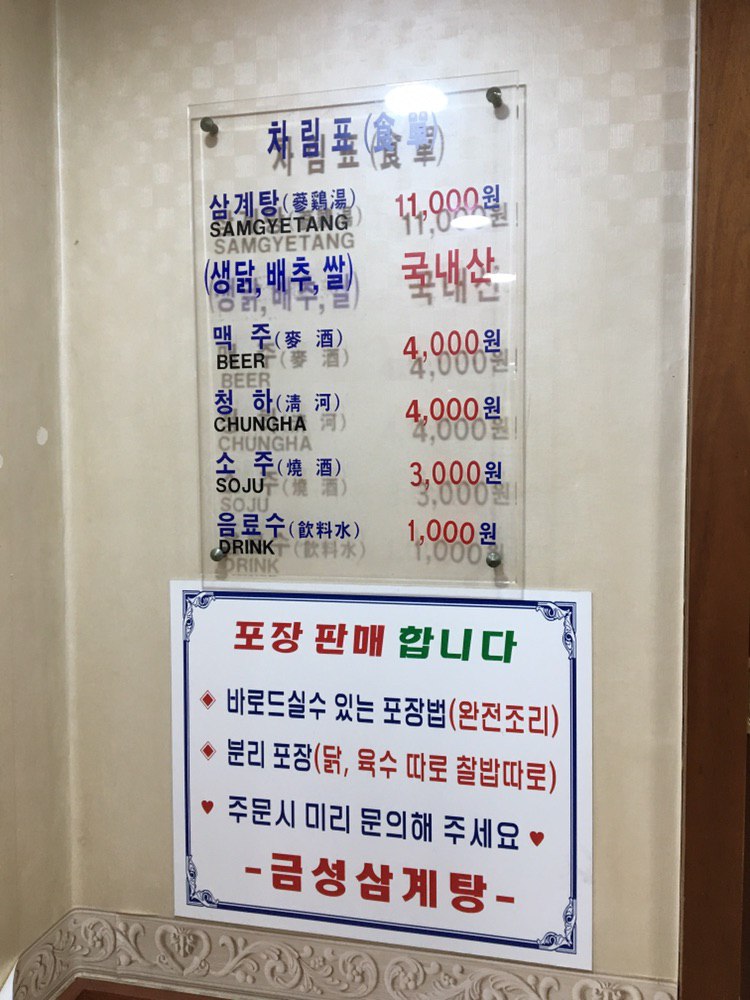 금성삼계탕 메뉴입니다. 심플합니다. 삼계탕 하나입니다.