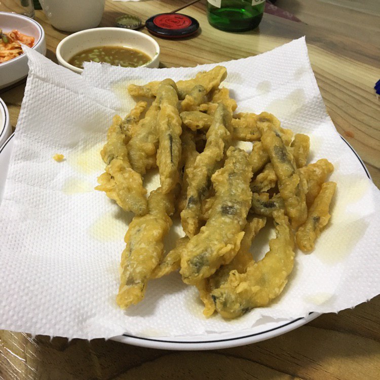 누구는 징그러워서 못먹겠다 했지만, 그러던 친구도 저의 끈질긴 설득과 술기운에 한입 먹고는 미꾸리와 튀김옷의 고소함의 투콤보에 넘어가서 미꾸리튀김은 순삭이 되었습니다...