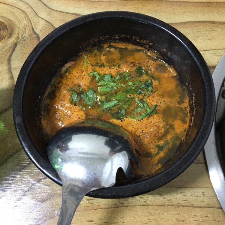 이것만 따로 메뉴를 만들어도 될 만큼의 맛이었습니다. 새우의 향이 찐하게 느껴지는 얼큰한 국물은 소주가 그냥 후루룩 넘어가게 만드는 마법의 맛이었습니다.