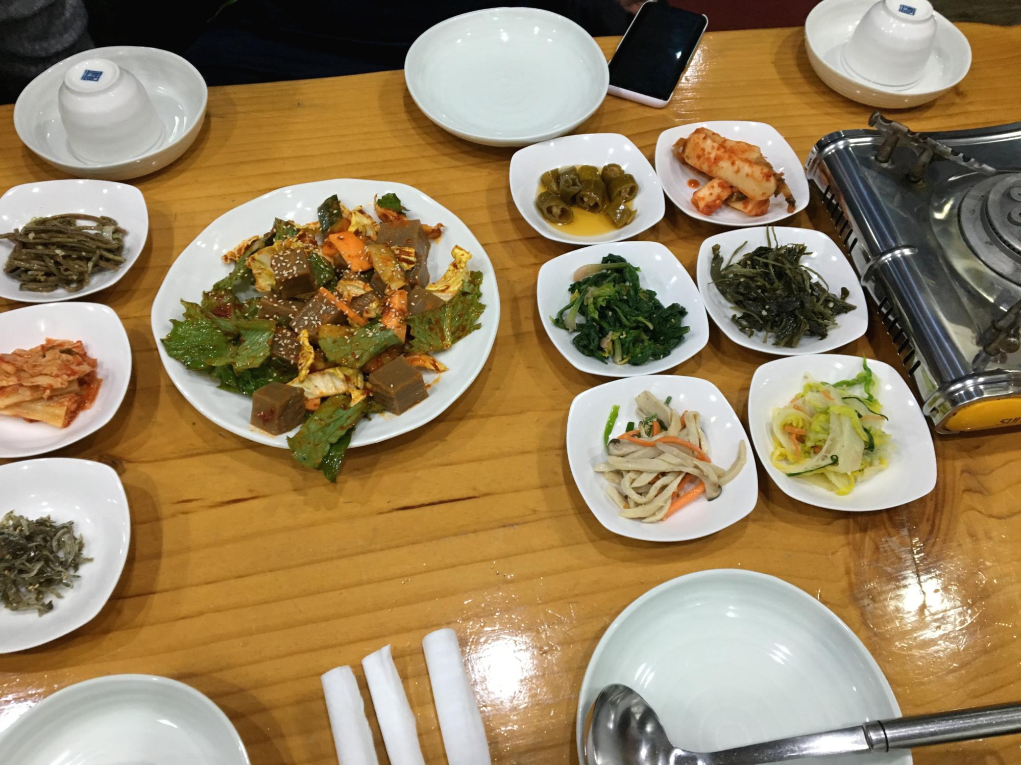 밑반찬입니다. 각종 나물을 많이 내어주십니다. 버섯, 시금치, 고추장아찌, 총각김치, 배추김치, 고사리 등..