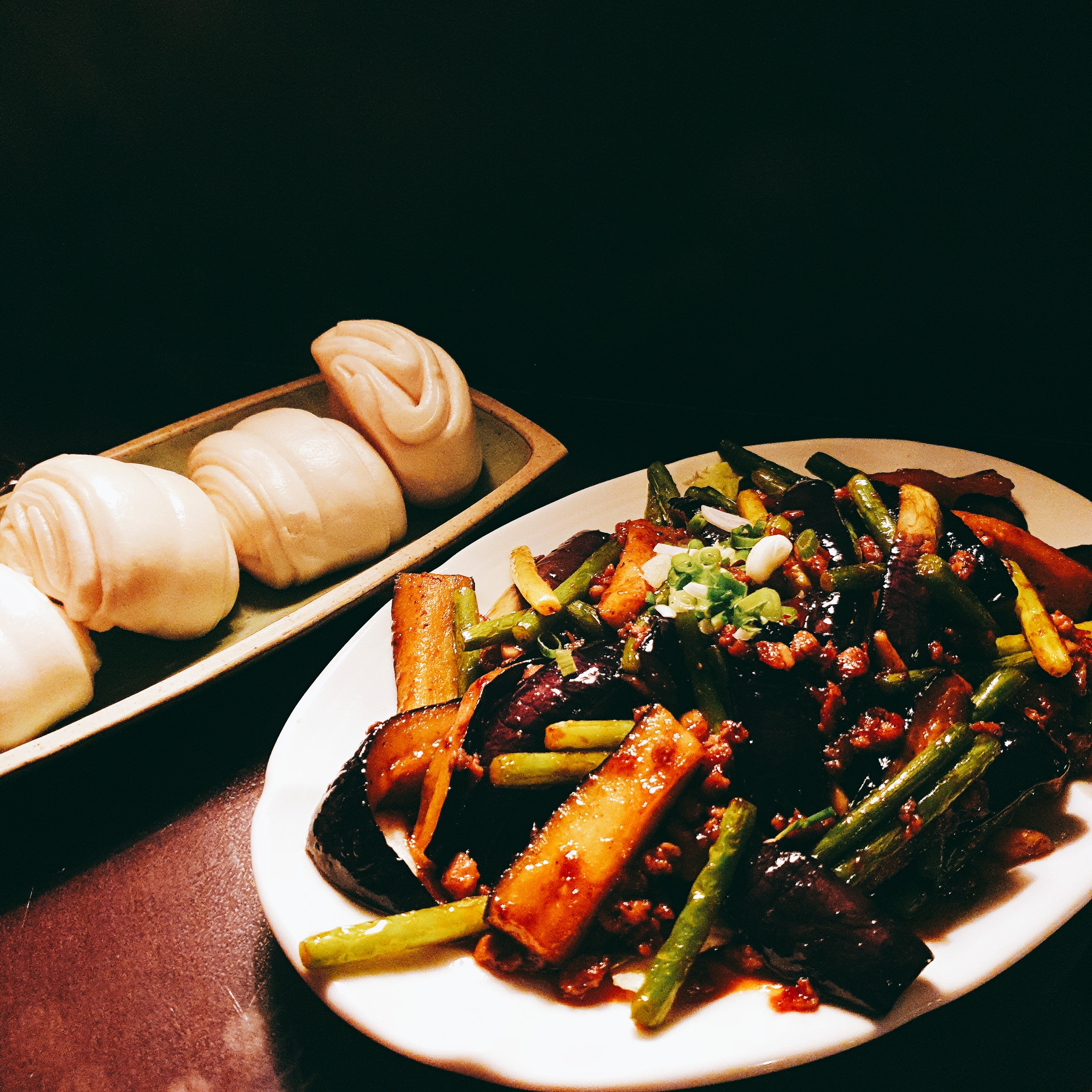 꽃빵 자체도 담백해서 가지와 매우 어울렸습니다. 저 고추기름소스에 찍어먹어도 정말 맛있었습니다.