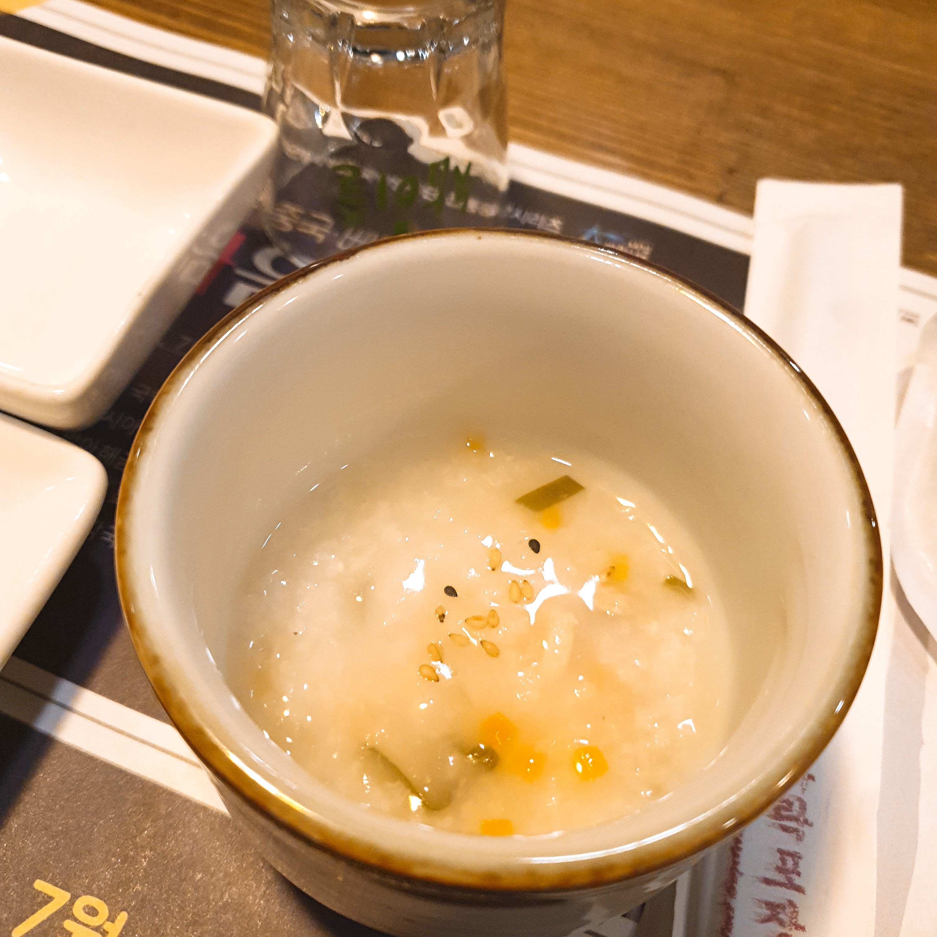 먼저 참치죽으로 시작합니다. 죽은 에피타이져로 가볍게 먹고 넘어가줍니다.