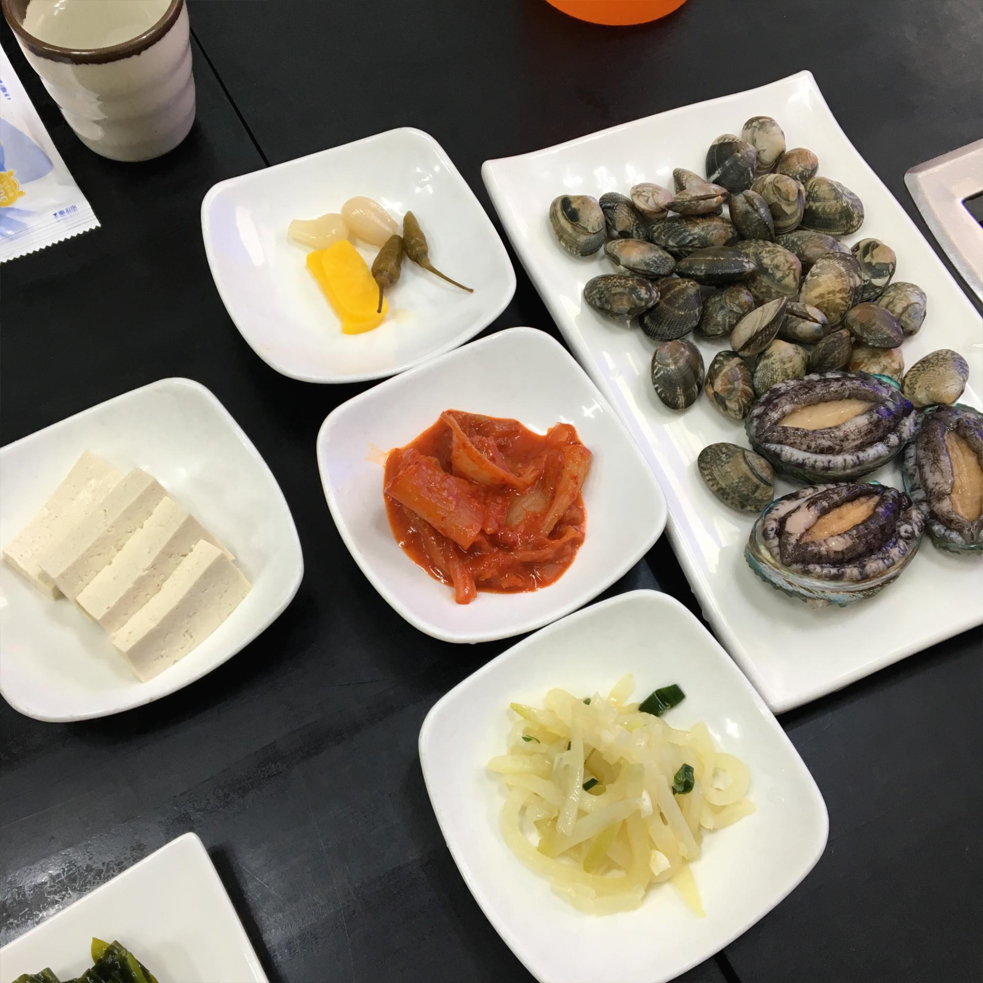 나머지 반찬들은 굉장히 정갈하게 먹을만큼 나왔고, 저 전복과 조개들이 생으로 올라와있어서.. '뭘 하려는거지?..' 하는 궁금증이 생기는 밑반찬이었습니다.