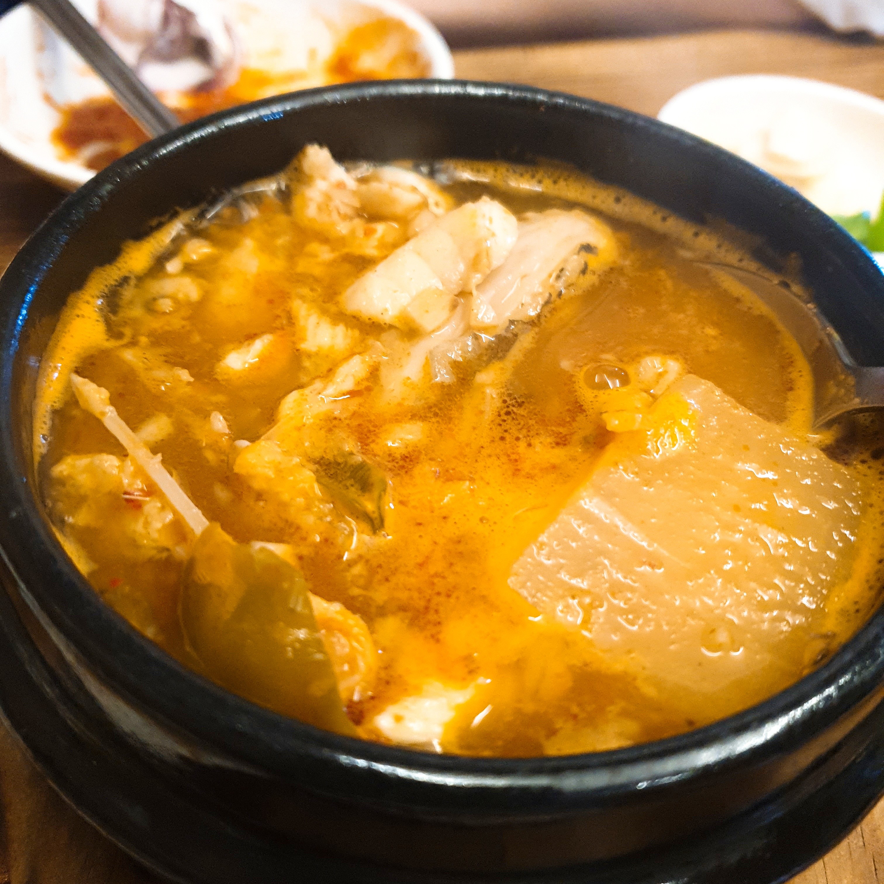 보통 매운탕은 얕고 넙적한 쇠냄비에 보글보글 끓여먹는걸 상상하는데, 동녘에회뜰때 매운탕은 뚝배기에 한소끔 끓여서 주십니다. 정말 시원했고, 안에 생선들 살도 먹을만큼 붙어있어서 매운탕까지 다 먹으니 배가 불렀습니다.