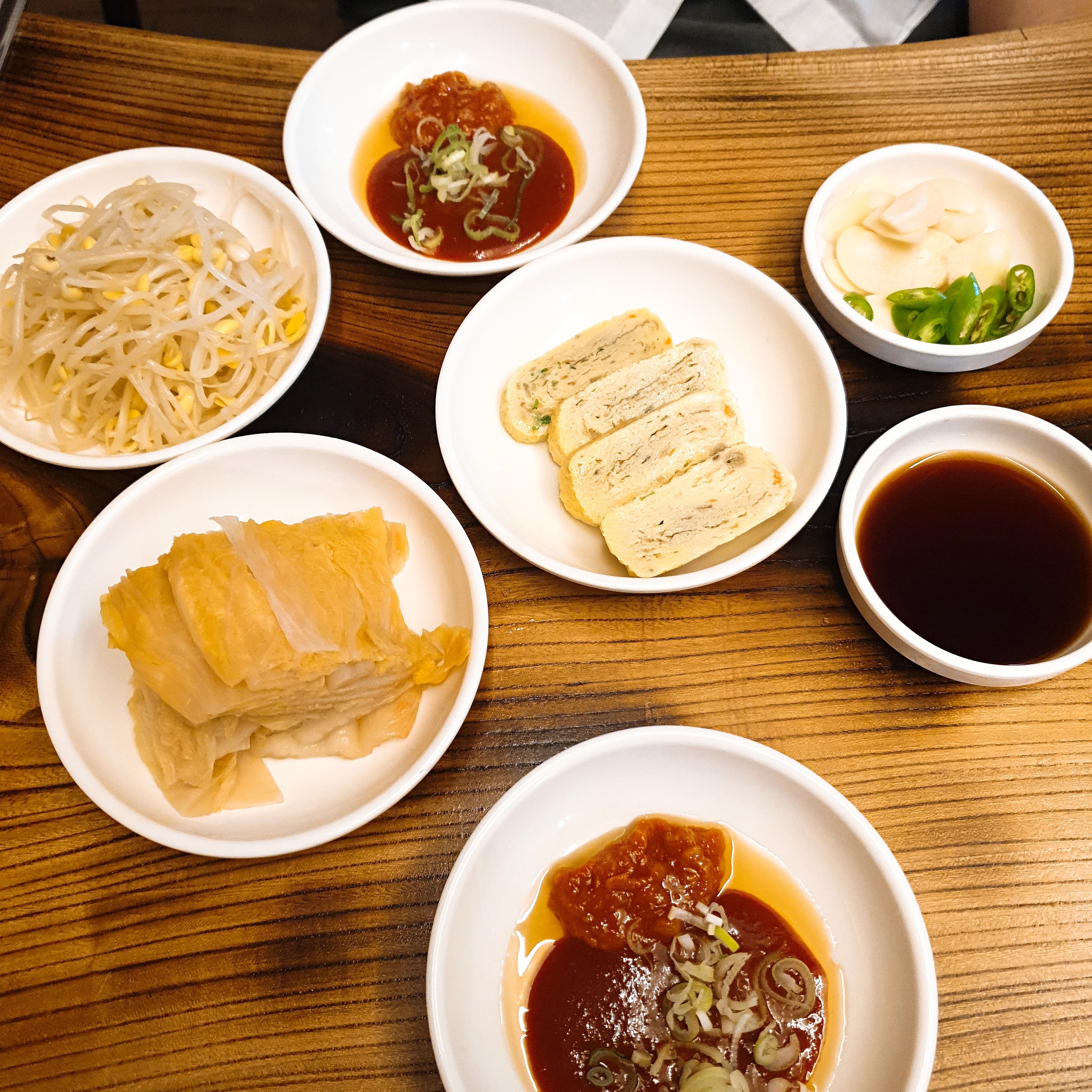 계란말이는 굉장히 폭신하니 맛있었고, 김치도 푹 익어서 회 싸먹기에 좋았고 콩나물은 거의 맹맛이었습니다.