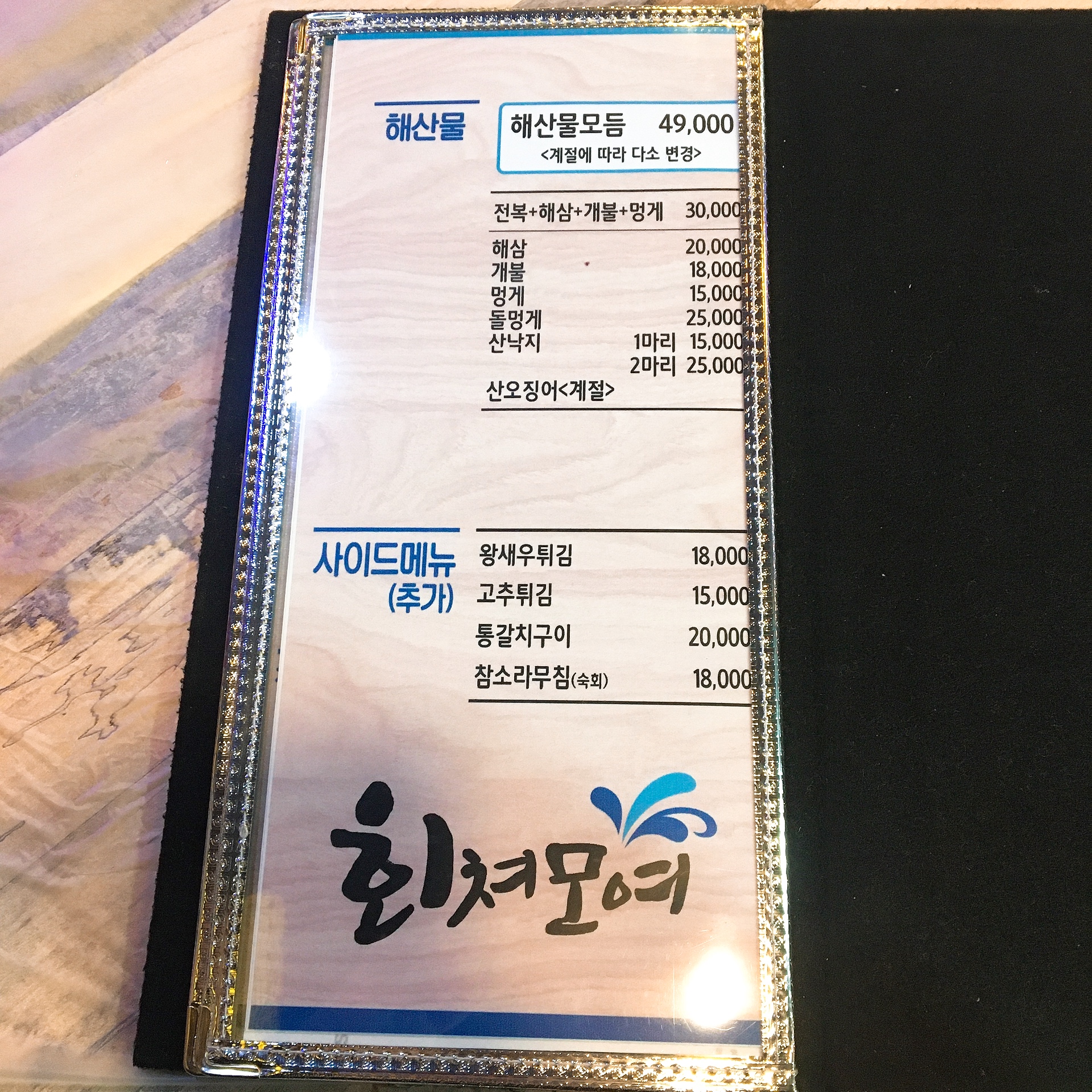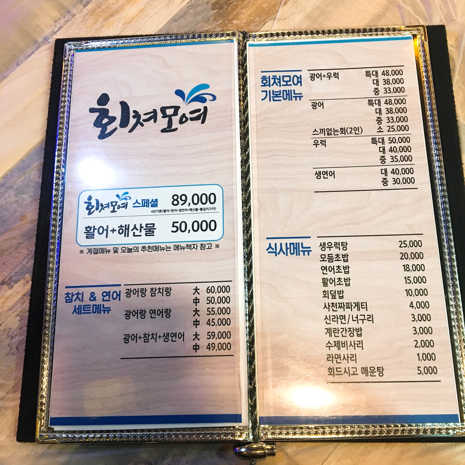 메뉴판을 잘 보시면~ 무엇보다 회쳐모여는 '저렴'! 합니다. 진짜 가성비 맛집입니다.