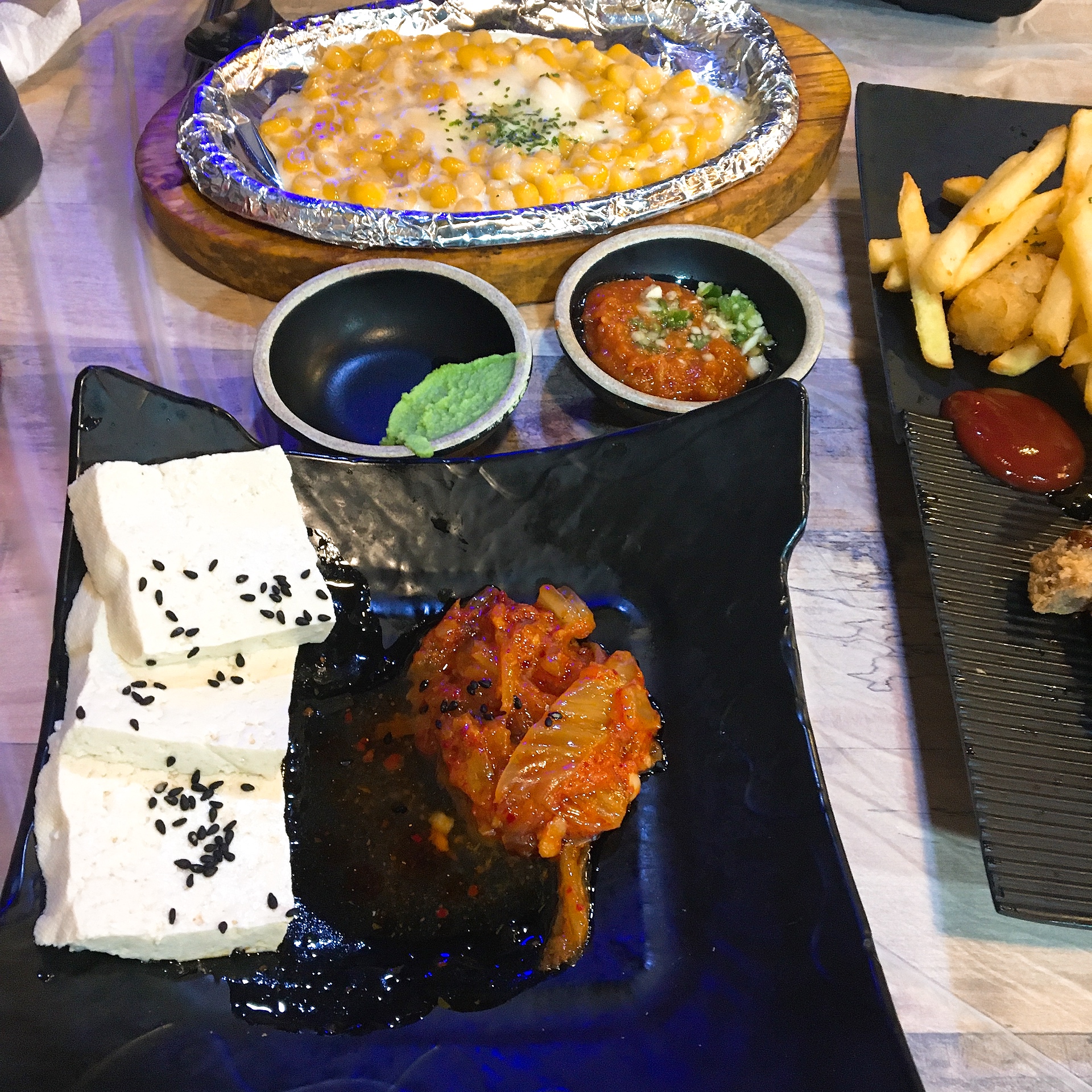 콘치즈, 두부김치를 시작으로 오른쪽으로 가면 다양한것들이 준비되어 있는데요,