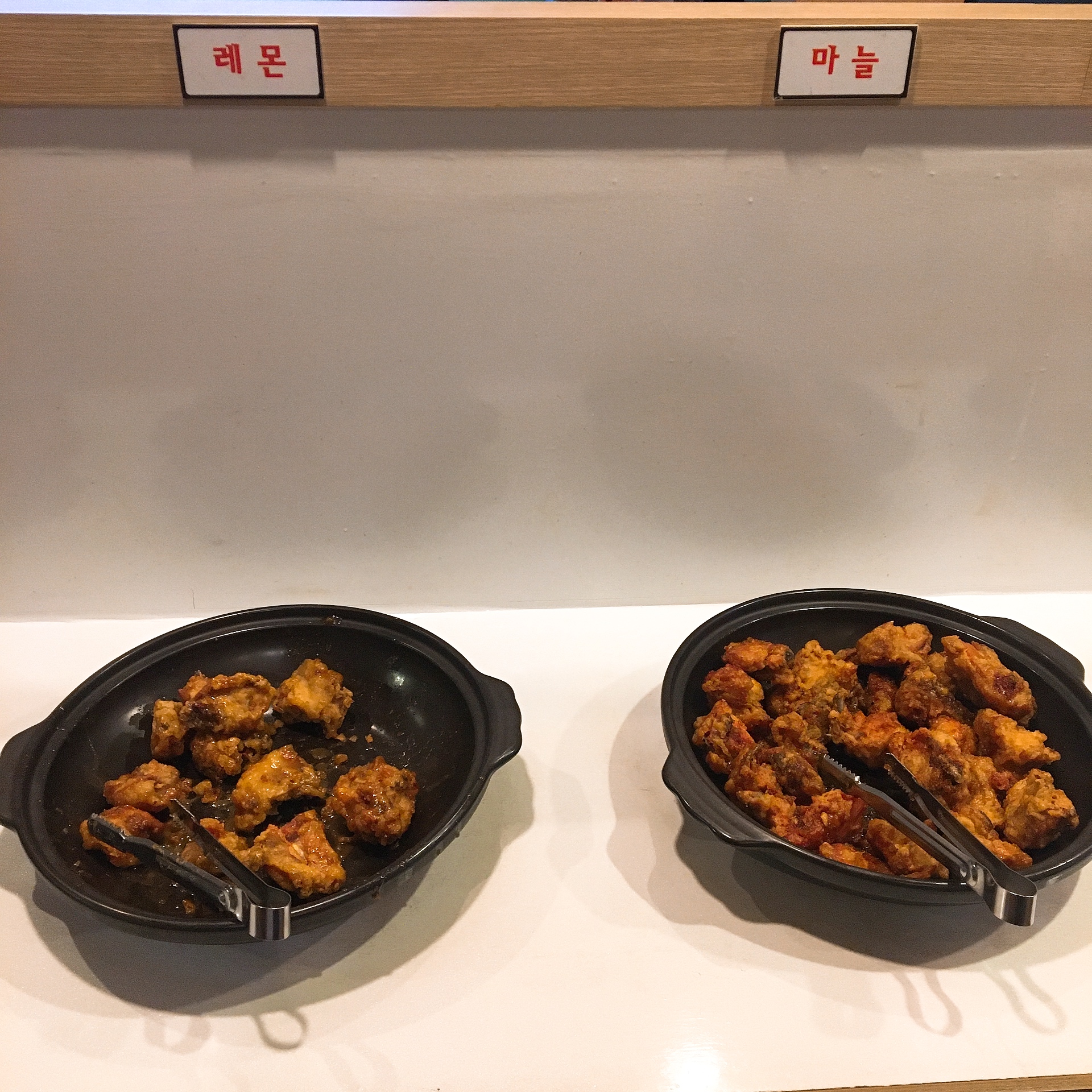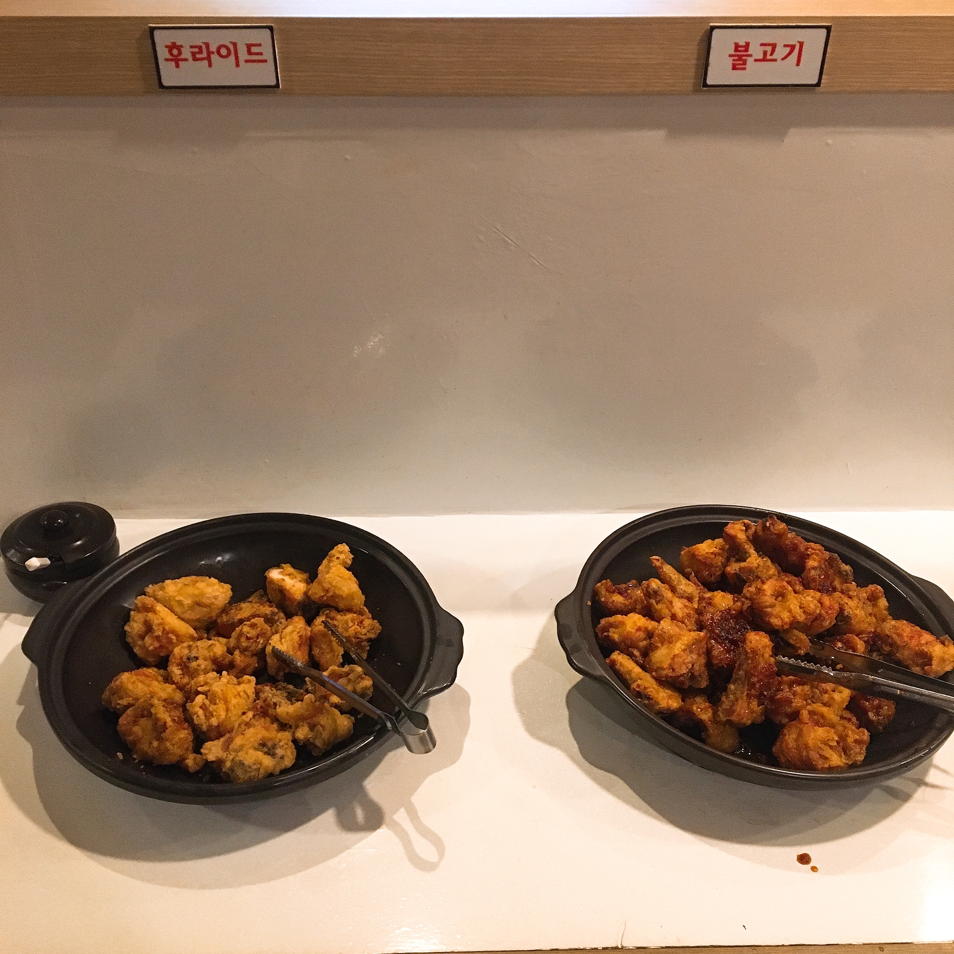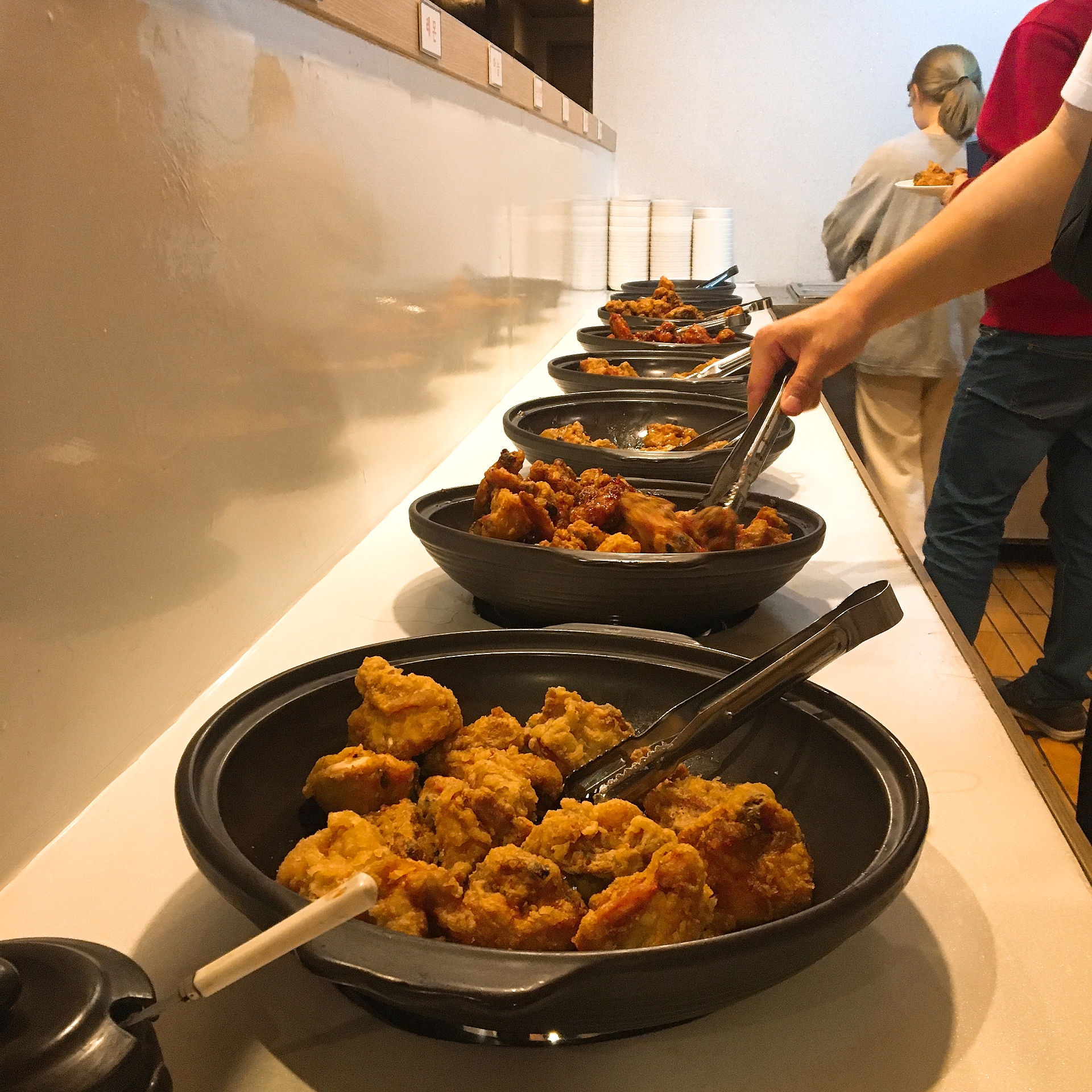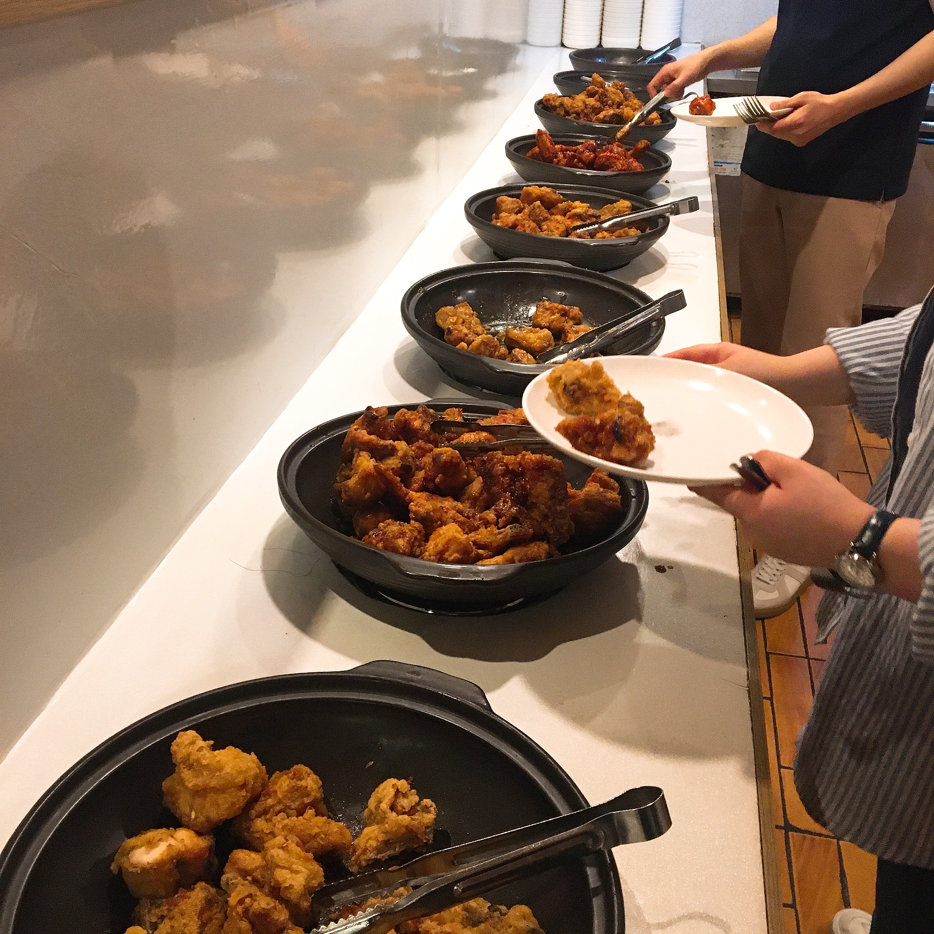 이렇게 각자 1인1그릇을 가지고 원하는 치킨을 쓸어담아서 자리에 가셔서 드시면 됩니다.