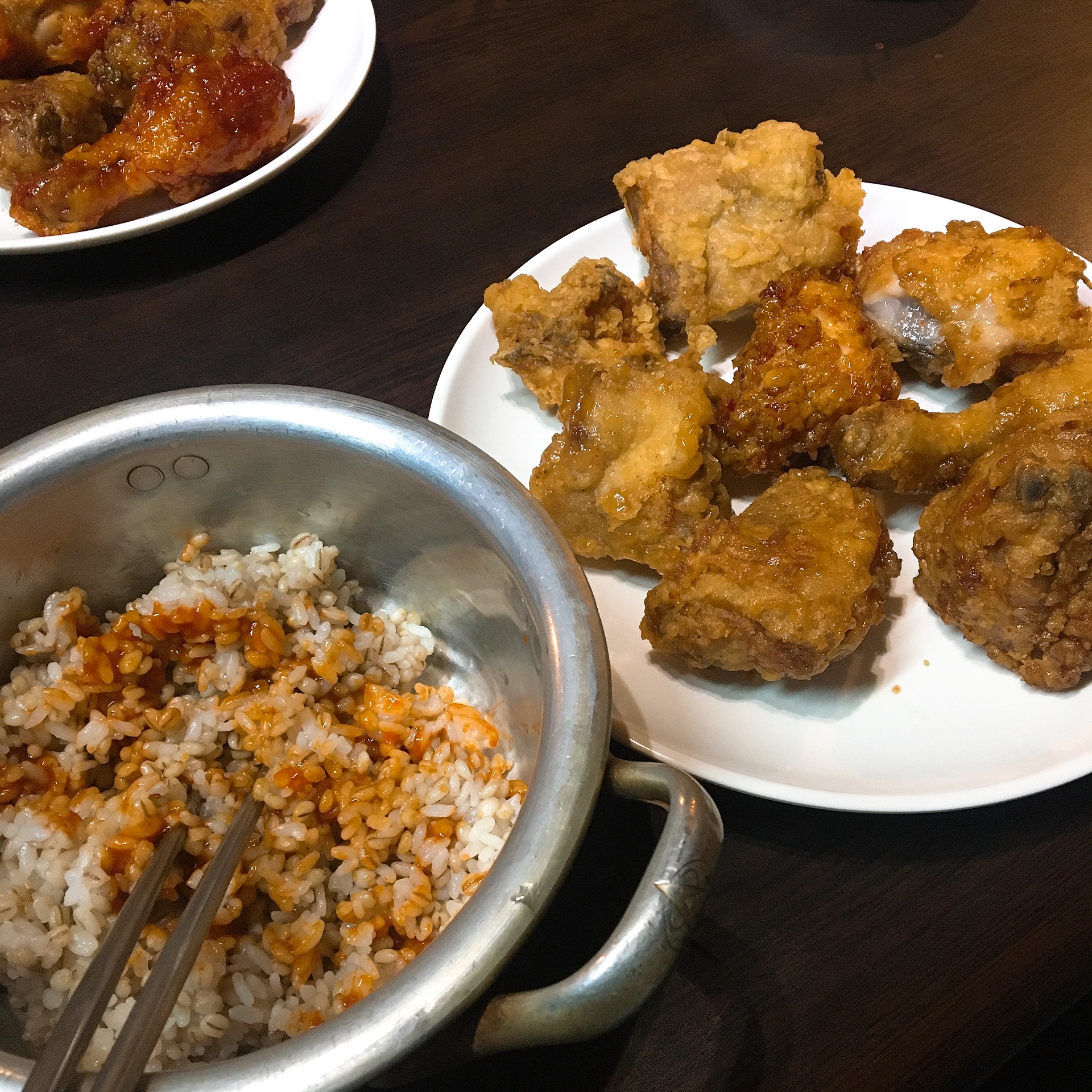 게다가 그냥 밥도 아니고 보리밥.. 치킨을 먹는 순간 살이 찌는것이지만 그래도 보리밥이니 살이 덜찌겠죠? (ㅎㅎ...)