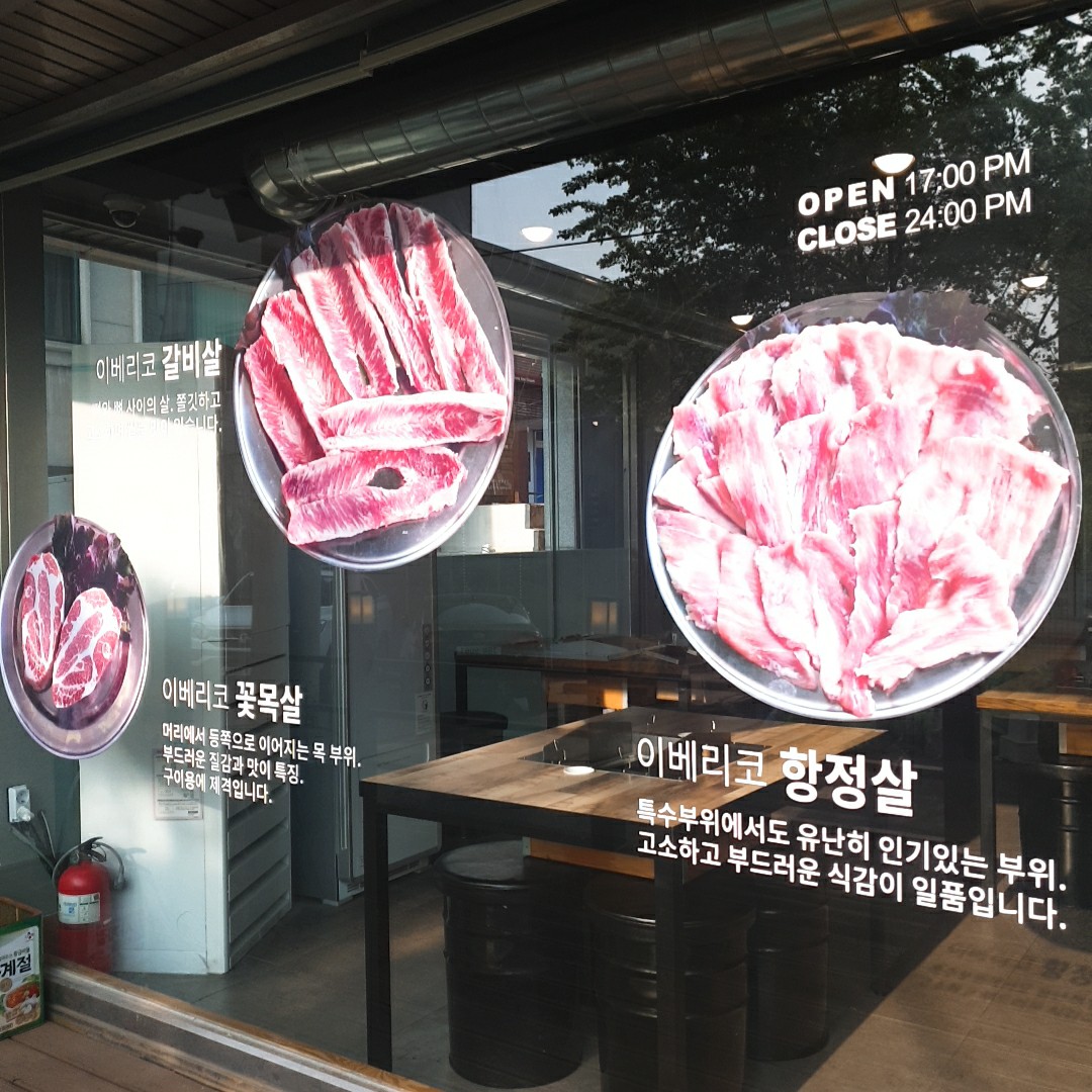 이렇게 입구에서부터 맛있는 고기가 사진으로 저희를 반겨주고, 이베리코고기란 것을 알 수 있습니다.