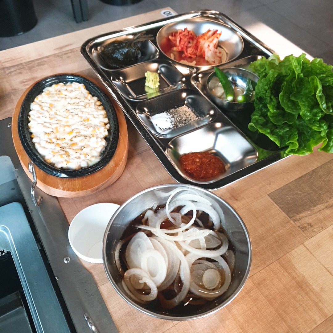 콘치즈도 적당히 느끼한게 맛있었고, 저 양파가 전 제일 맘에 들었습니다. (이따가 고기랑 같이 먹어볼게요~)