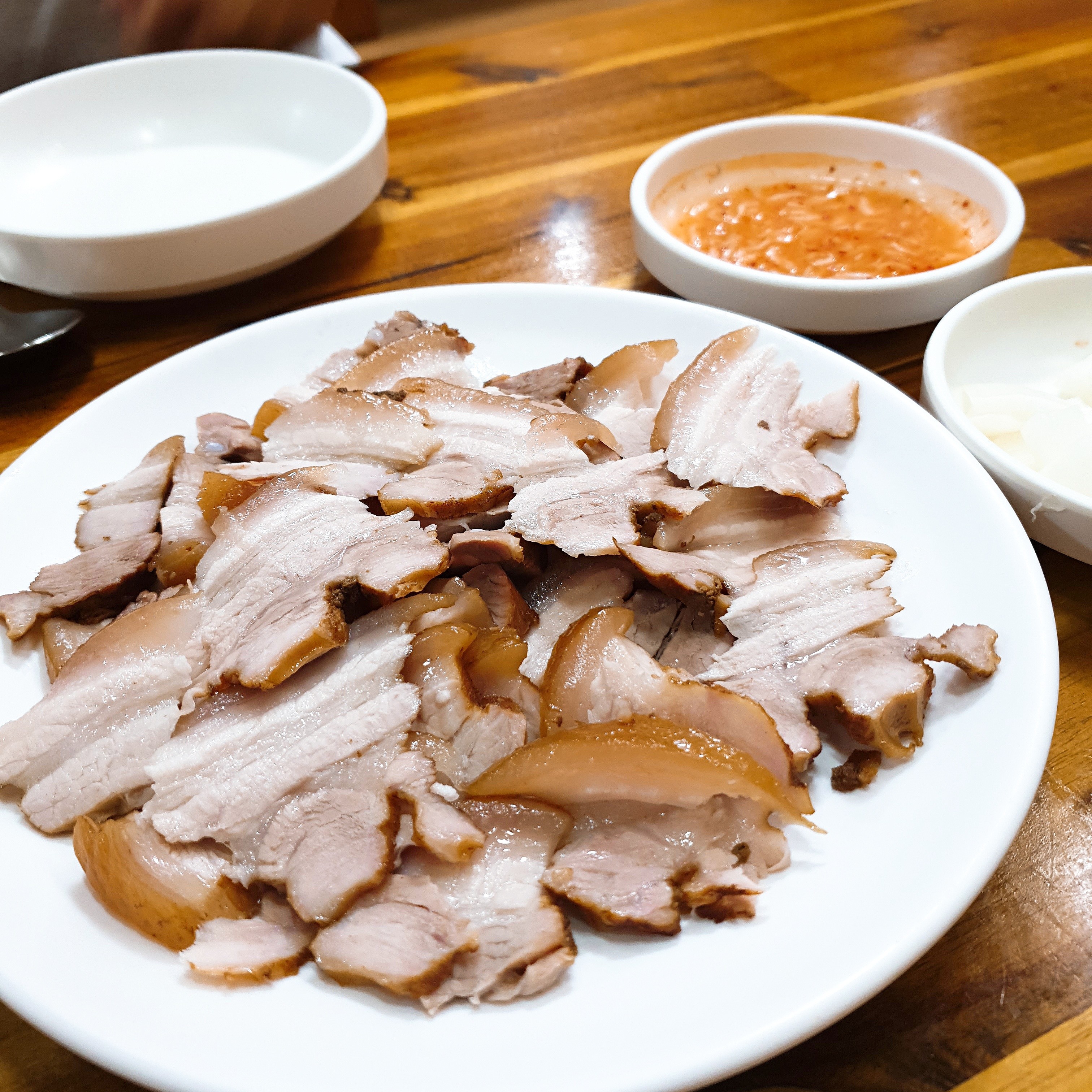 진짜 보들보들하고 돼지냄새 하나 안나고 비계가 적당히 많아서 적당히 고소하고 뭐로 삶으셨는진 몰라도 고기에 그 향(저는 약간 간장향같은데..)도 베어나오는게 아주그냥..