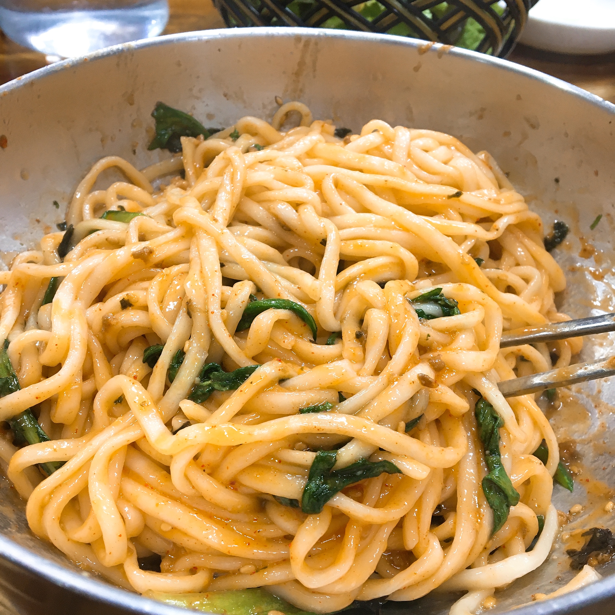와.. 이게 진짜 어떻게 표현해야할지 모르겠네요. 칼국수 특유의 그 꾸덕꾸덕한 맛 있죠? 샤브샤브도 칼국수 넣으면 그렇게 변하잖아요? 그게 온전히 살아있는 비빔국수랄까요..