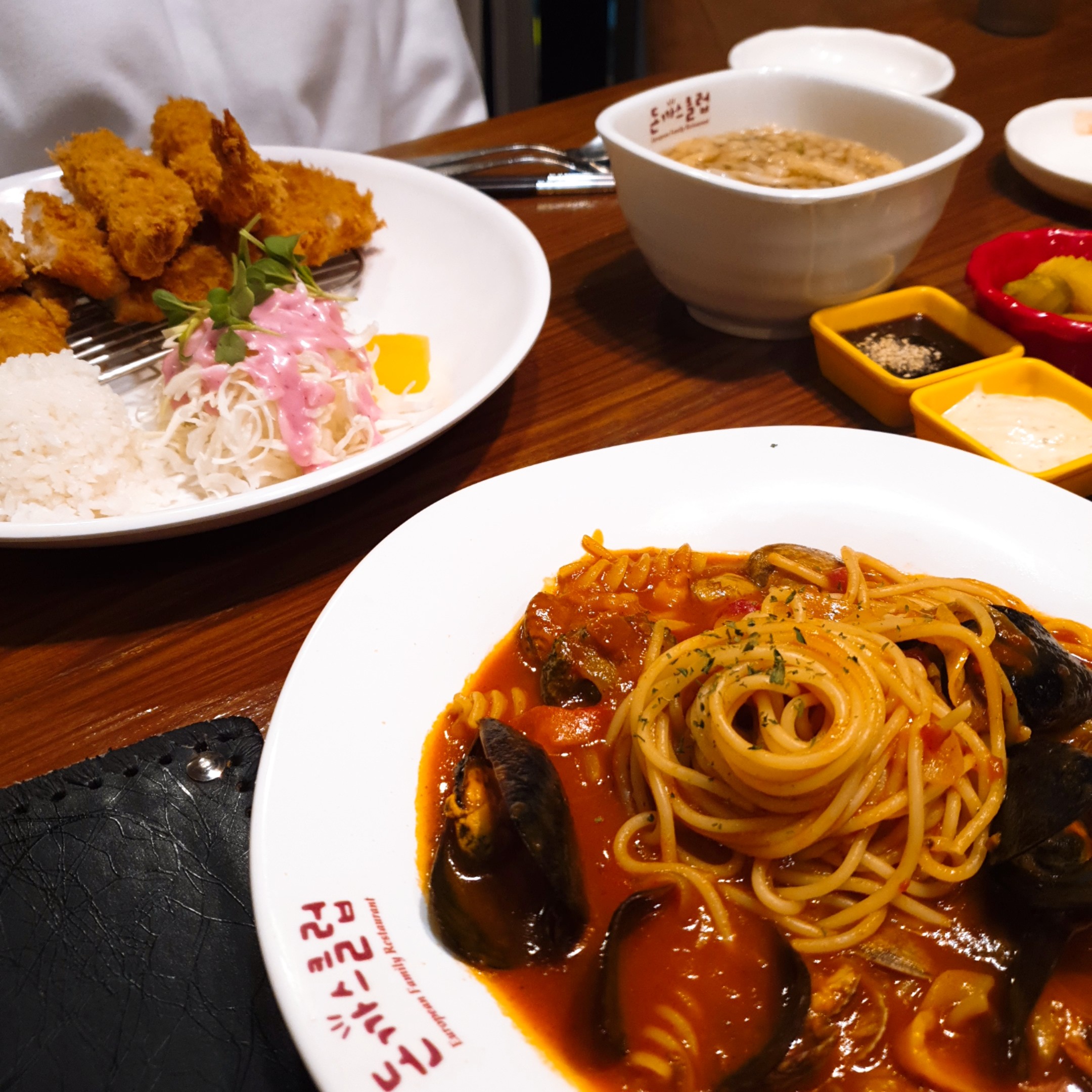 저는 '돈클정식'과 '해산물 토마토 스파게티'를 시켜봤습니다.