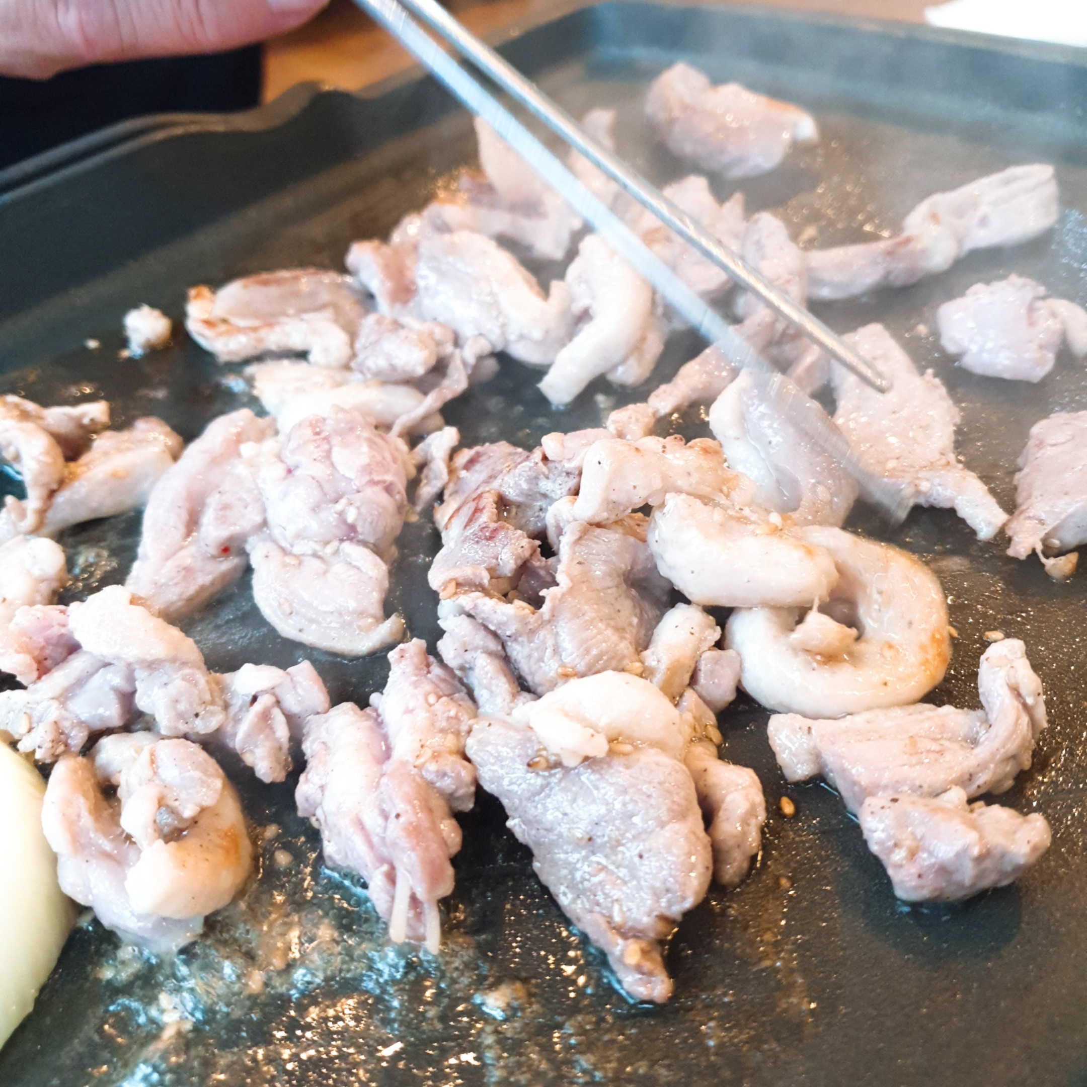 그리고 신기하게 불판에 들러붙지 않더라고요. 위에 살짝 말씀드렸다시피 저흰 저 양을 10분만에 다 먹어버려서.. 중짜리를 더 시켜서 한번 더 구웠는데도 불판이 타지 않아서 좋았습니다.