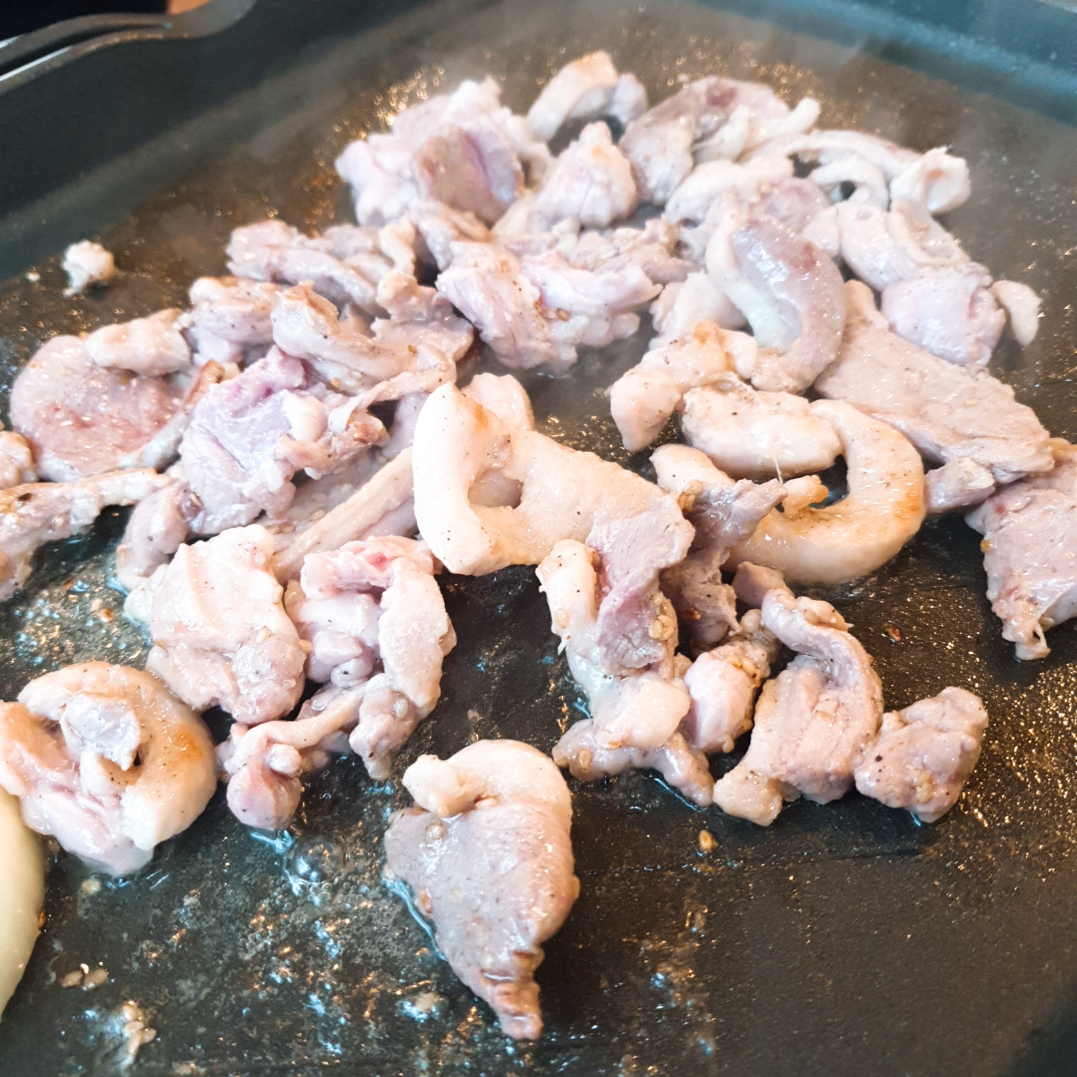 불판에 올려서 지글지글 굽기 시작했습니다.