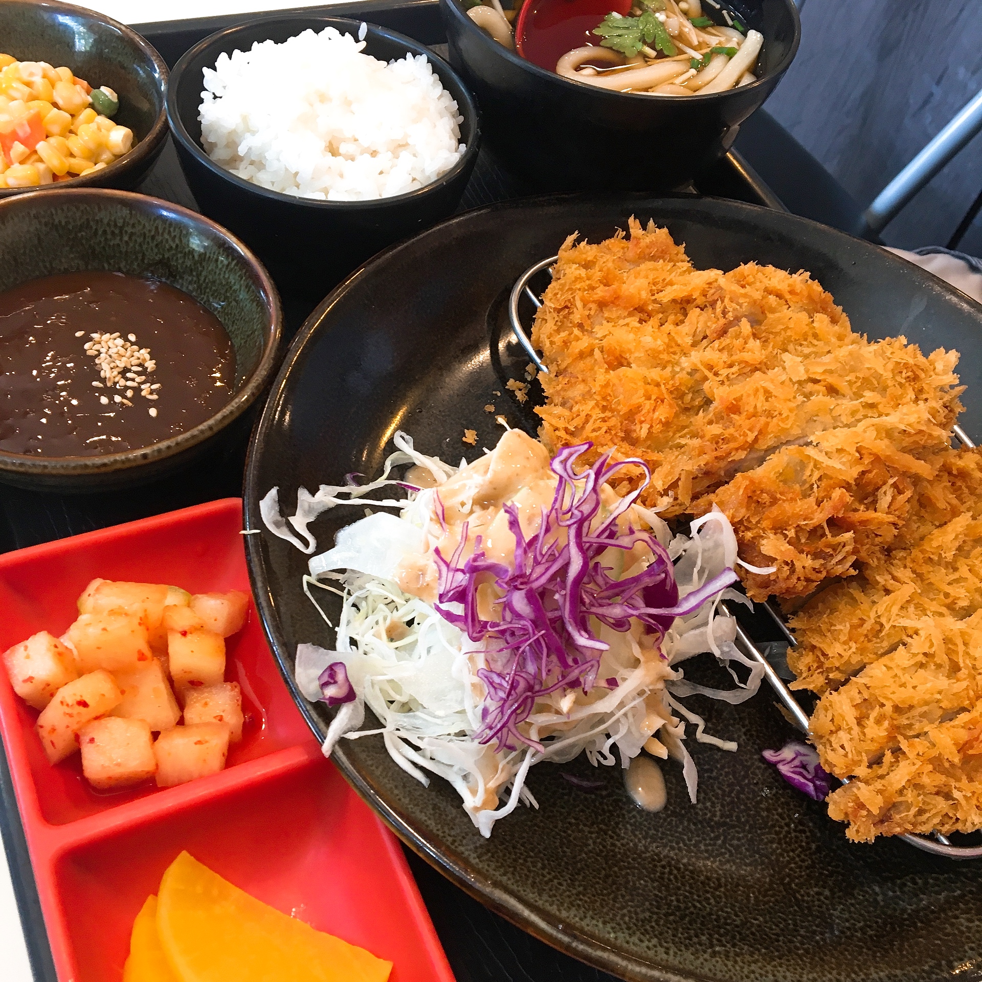 그리고 빵가루가 풍부하게 입혀진 돈까스는 굉장히 바삭하고 속은 촉촉부드러웠고, 정식엔 '우동'까지 주셔서 배부르게 드셨다고 합니다.